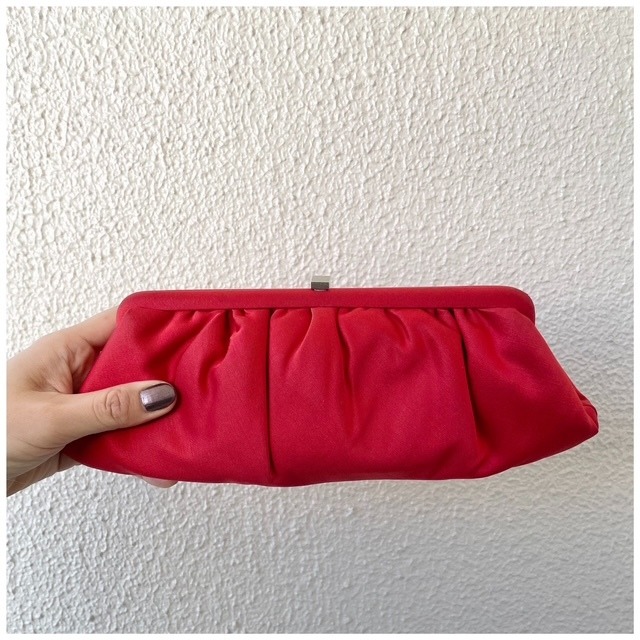 フランス買付 ヴィンテージ プチバッグ パーティーバッグ クラシカル サテン 朱色 バーミリオン