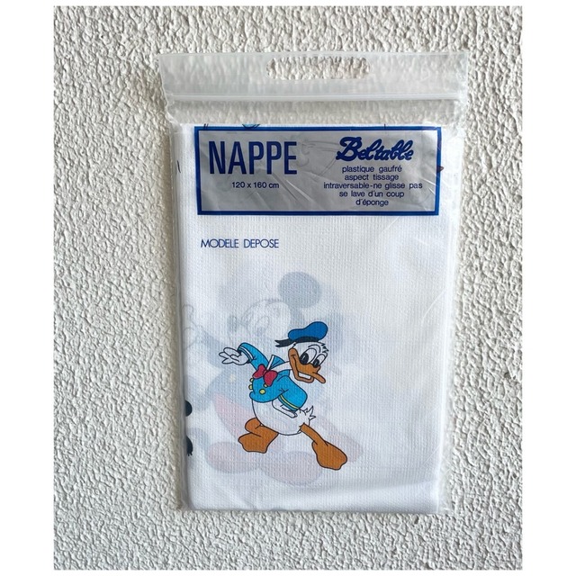 ◆品番◆OT260219 ◆サイズ◆120×160cm ◆素材◆ビニール ◆カラー◆ホワイト ◆表記◆ ◆年代◆1970-80s ◆価格◆7000円(税抜) フランスにて買い付けましたレトロかわいいヴィンテージナップ(テーブルクロス)。クラシックなディズニーキャラクターが散りばめられた、デッドストックの1点です。パッケージにはフランス語で防水(intraversable)、滑りにくい(ne glisse pas)、スポンジで拭き取り可能(se lave d’un coup d’éponge)と表記されている実用的なアイテムです。ヴィンテージディズニーコレクションとして袋のまま飾るも良し、撮影小物やディスプレイアイテムとしても映えさせても良し。ヨーロッパのキッチンの空気感が楽しめる1枚です♡ ◇NOTICE◇ こちらはデッドストック(未使用)商品です。採寸には多少の誤差があることもございます。ご了承ください。used、vintage商品のため、返品交換は致しかねます。 年代物のため、コンディションについて気になる点がございましたら、ご購入前にお問合わせください。