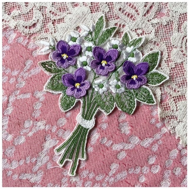フランス買付 ヴィンテージ モチーフ ワッペン 装飾 ブーケ スミレ バイオレット