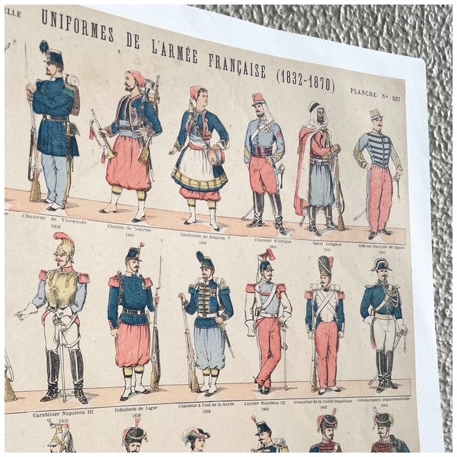 フランス買付 アンティーク 広告 ポスター 軍事イラスト ユニフォーム フランス軍 1832-1870