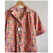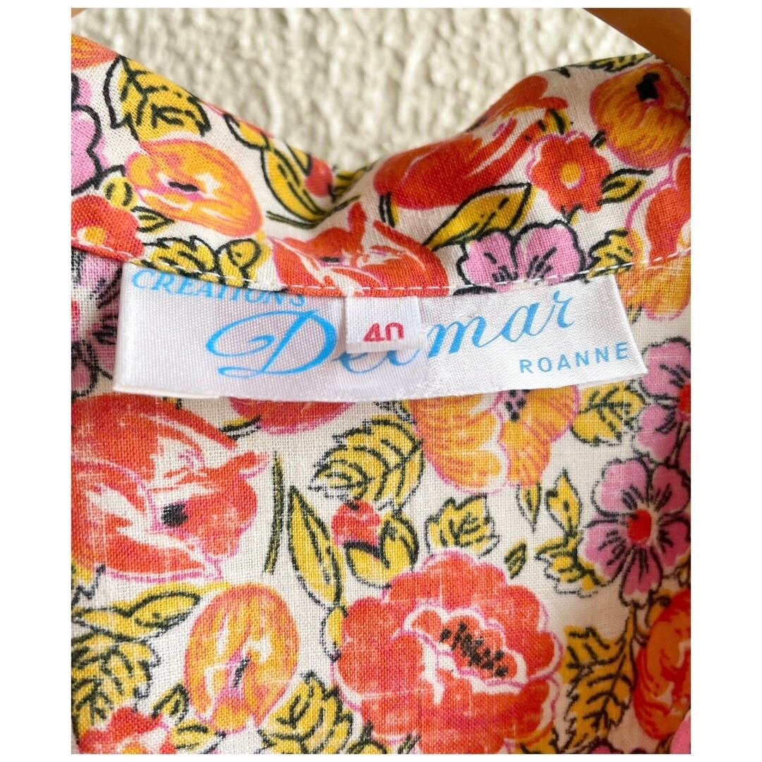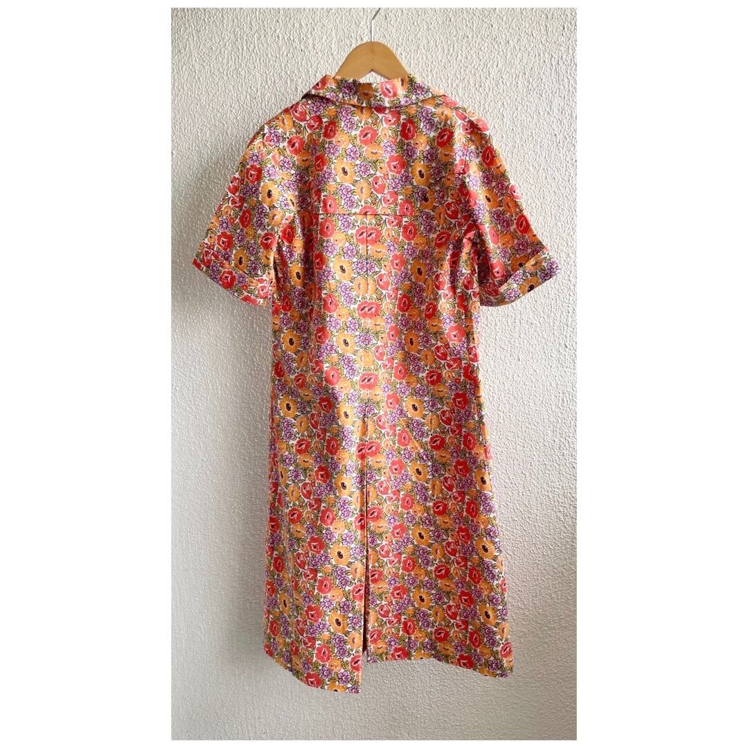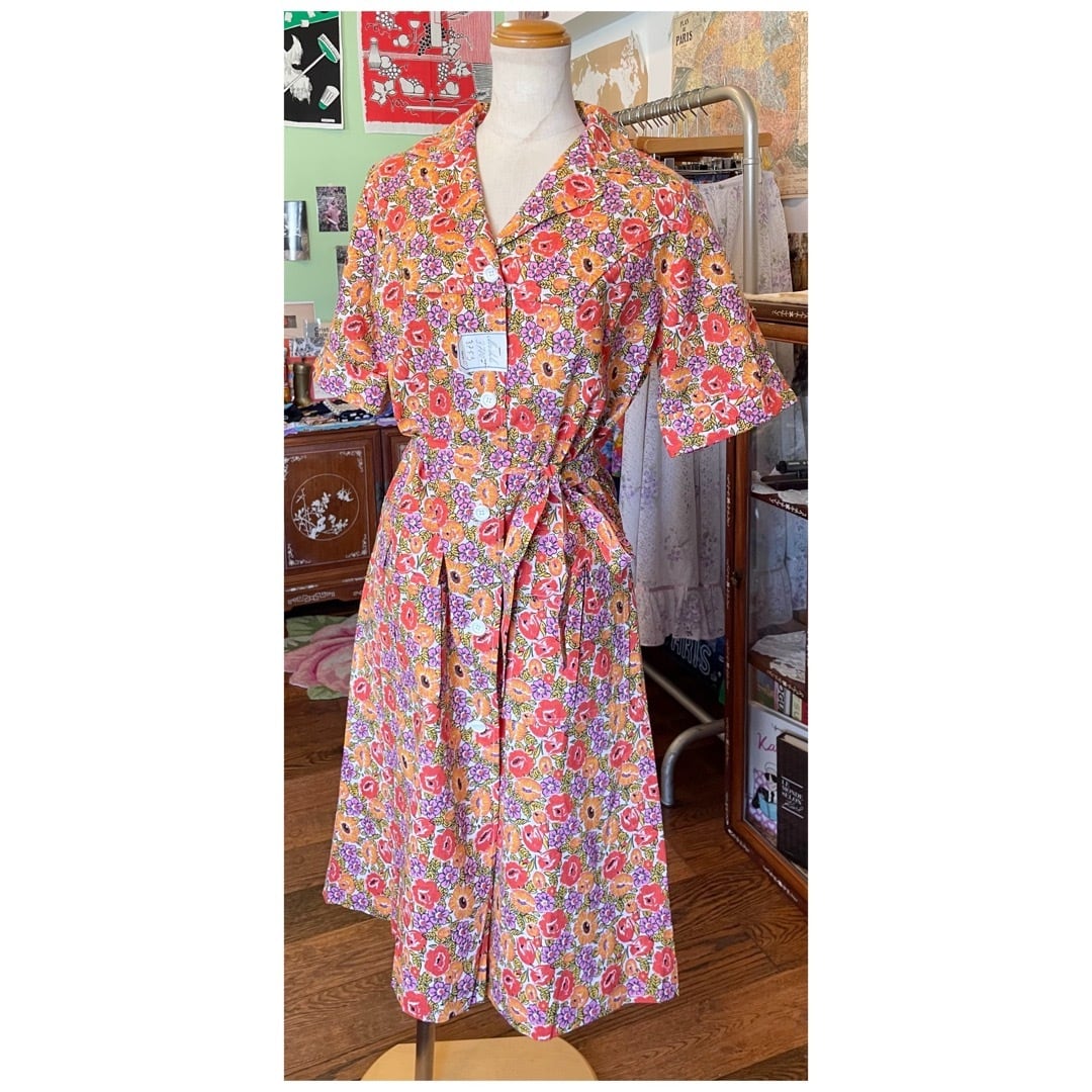 フランス ヴィンテージ デッドストック ワンピース オープンカラー コットン 花柄 オレンジ