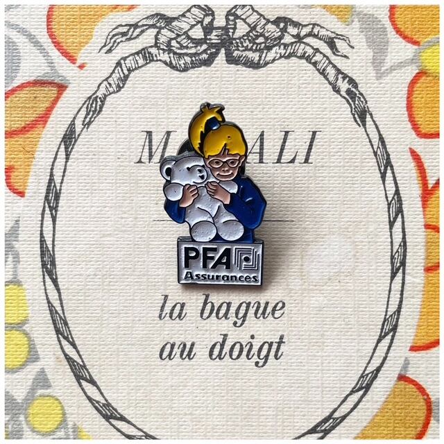 フランス ヴィンテージ ピンバッジ ピンズ PFA Assurances テディベア 女の子 メガネガール