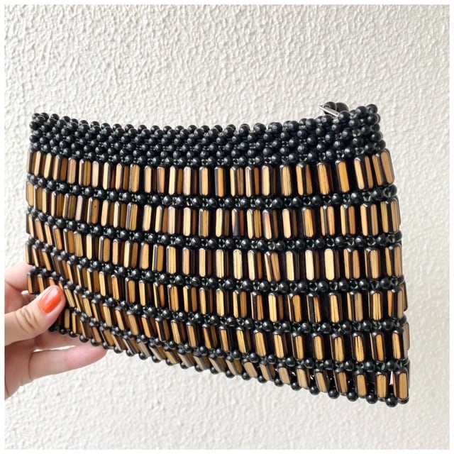 ヴィンテージ クラッチバッグ ビーズバッグ プチバッグ ブラック ブラウン