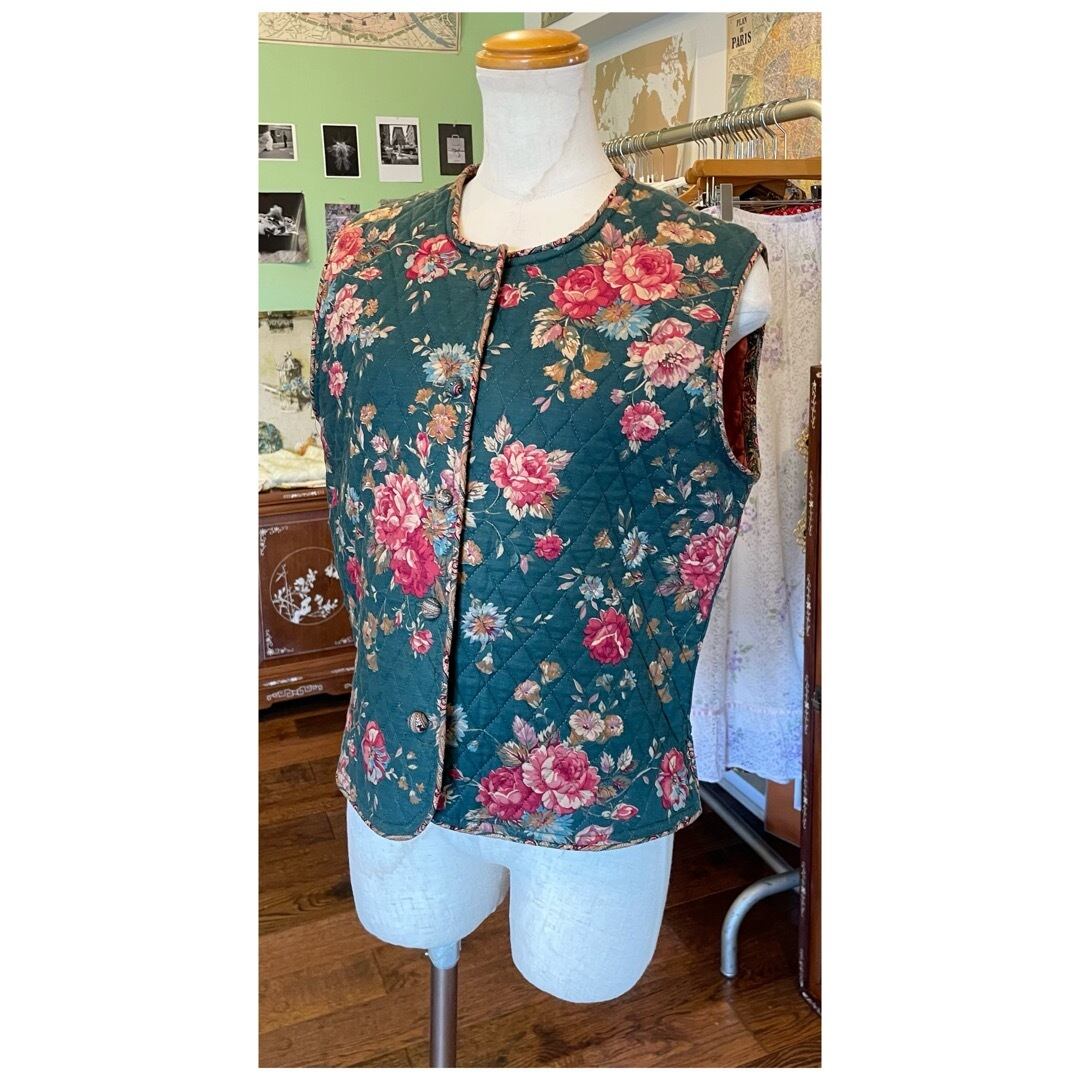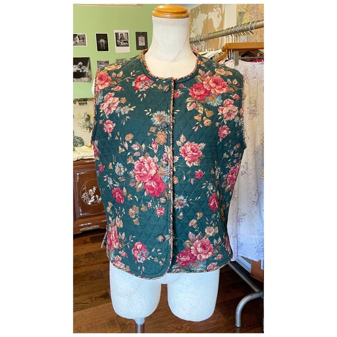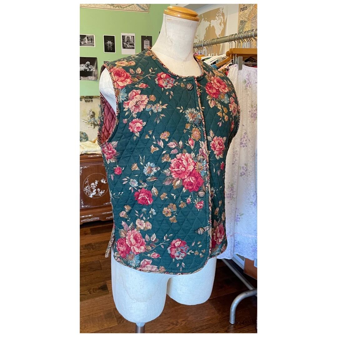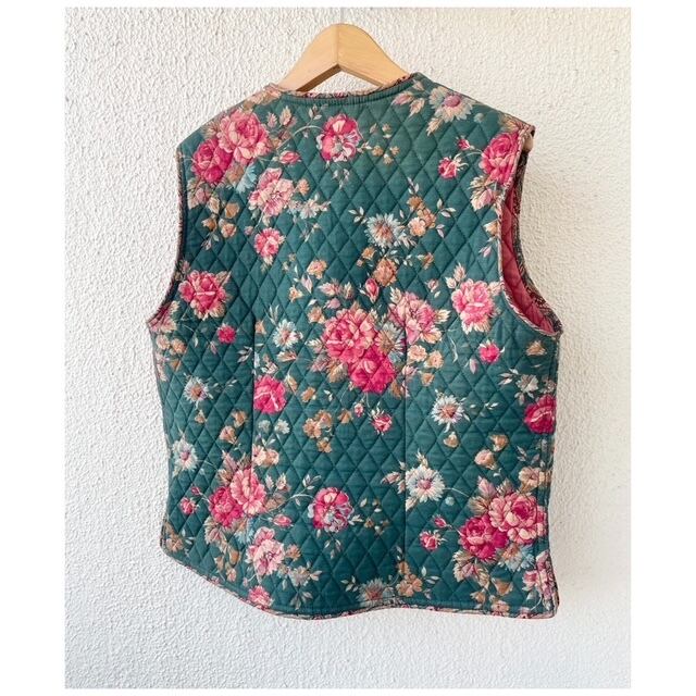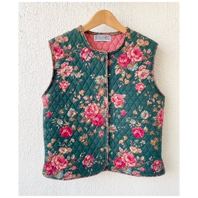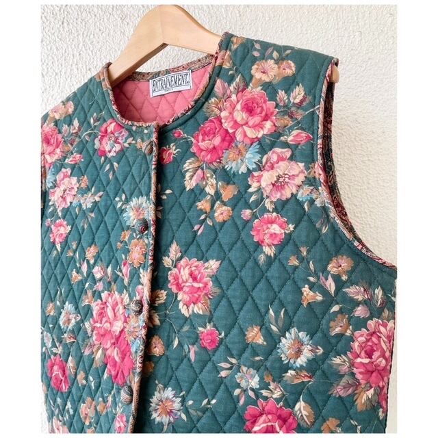 フランス買付 ヴィンテージ キルティングベスト 花柄 フローラルプリント グリーン