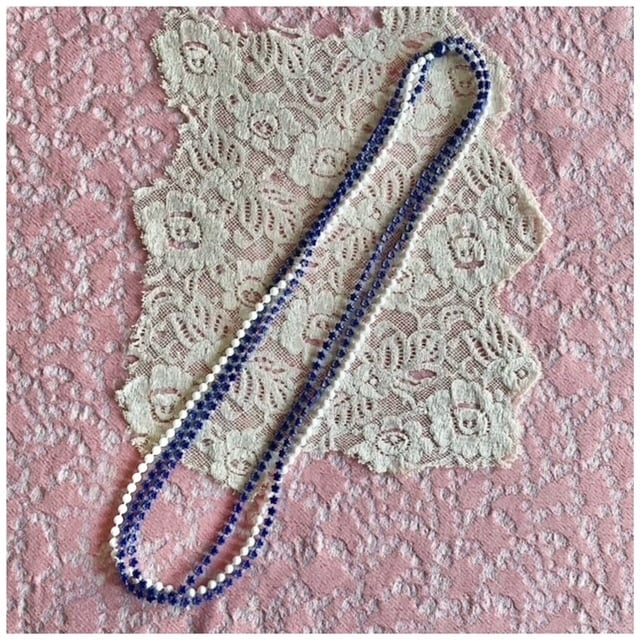 フランス買付 ヴィンテージ ネックレス ロングネックレス 3連 バイカラー お花 ネイビー ホワイト