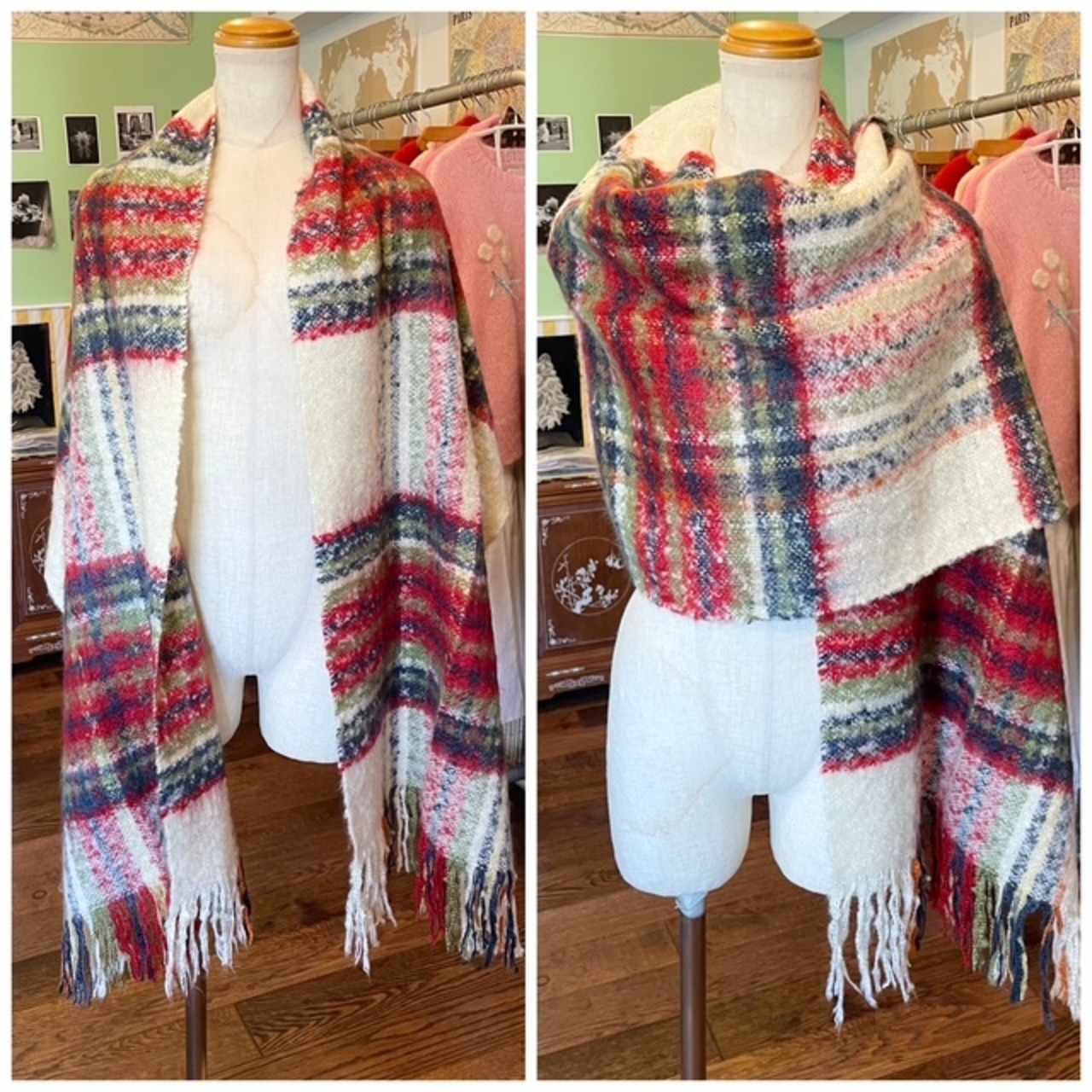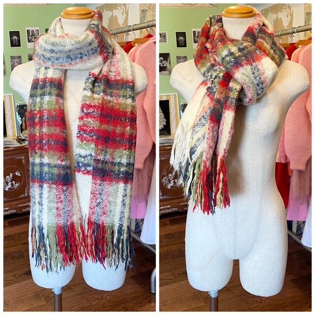 フランス買付 マフラー ストール アクリル トラディショナル タータン チェック 赤