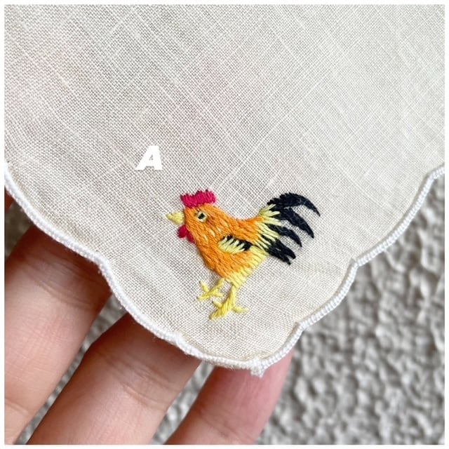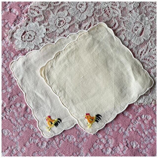 *同柄2枚セットです。ハンド刺繍のためニワトリのお顔は微妙に違います。