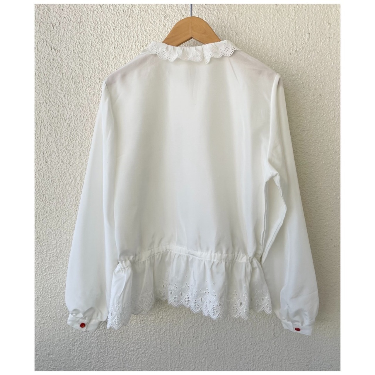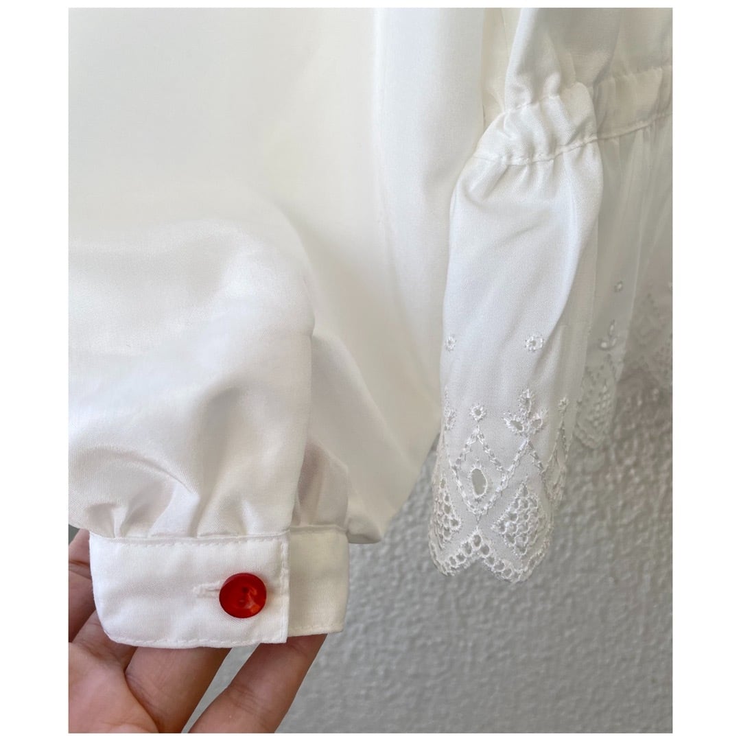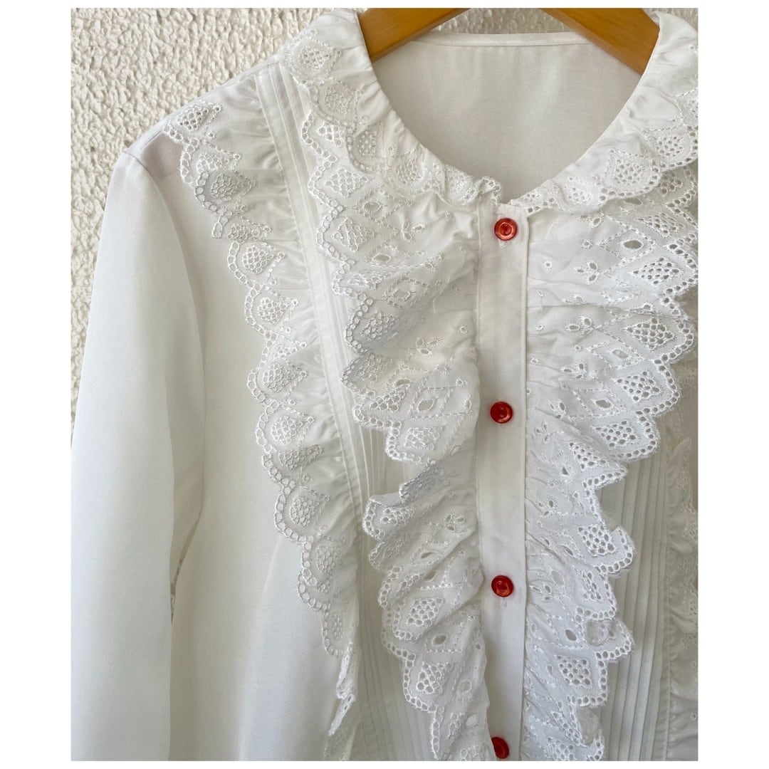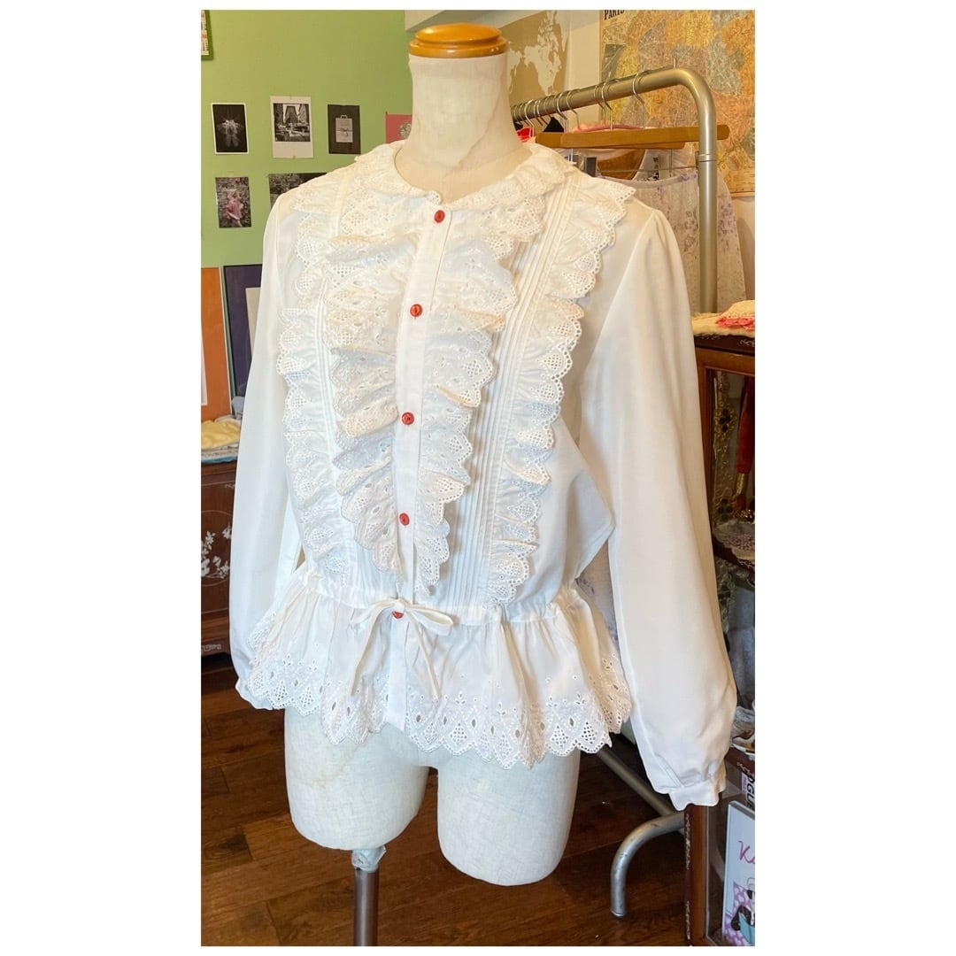 ヴィンテージ ブラウス フリル レース カットワーク ペプラム 日本製 ホワイト