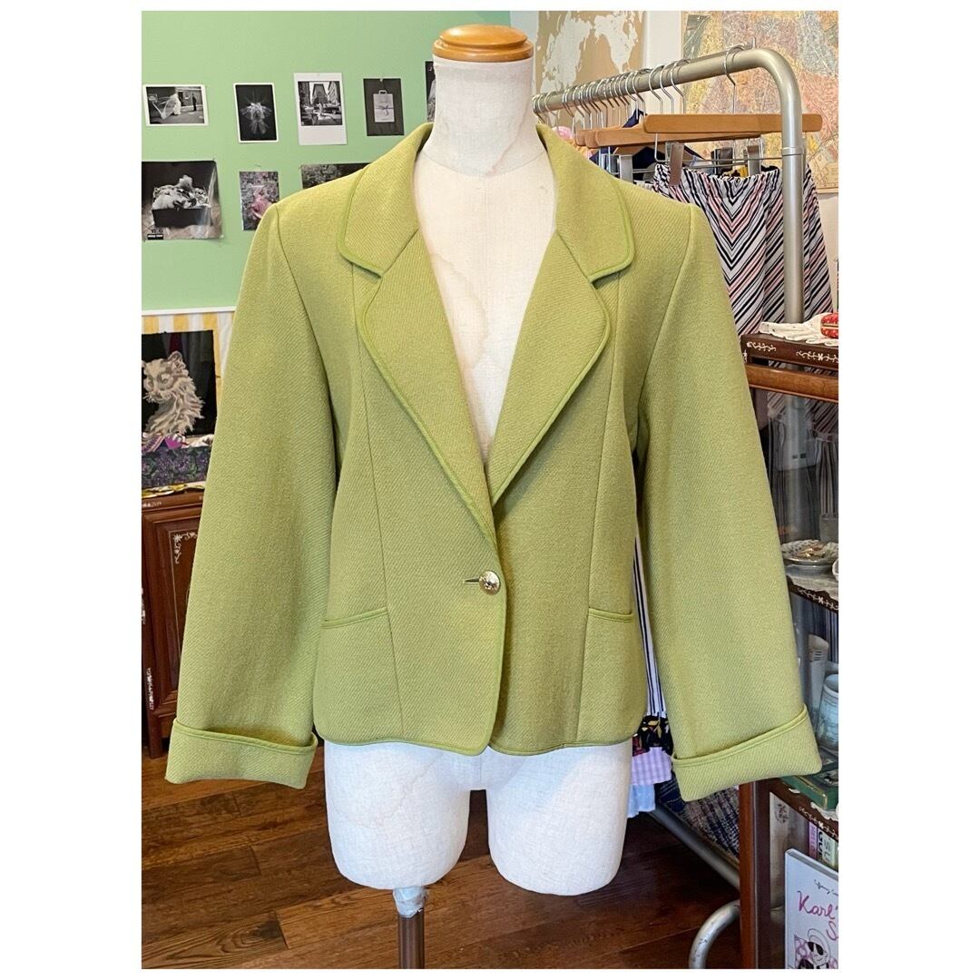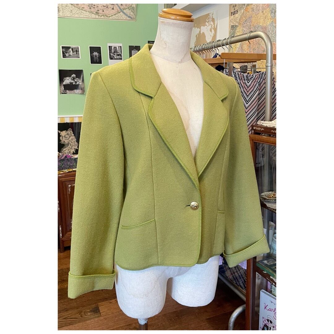 フランス買付 ヴィンテージ ジャケット パイピング デザインボタン ロールアップ袖 ピスタチオグリーン