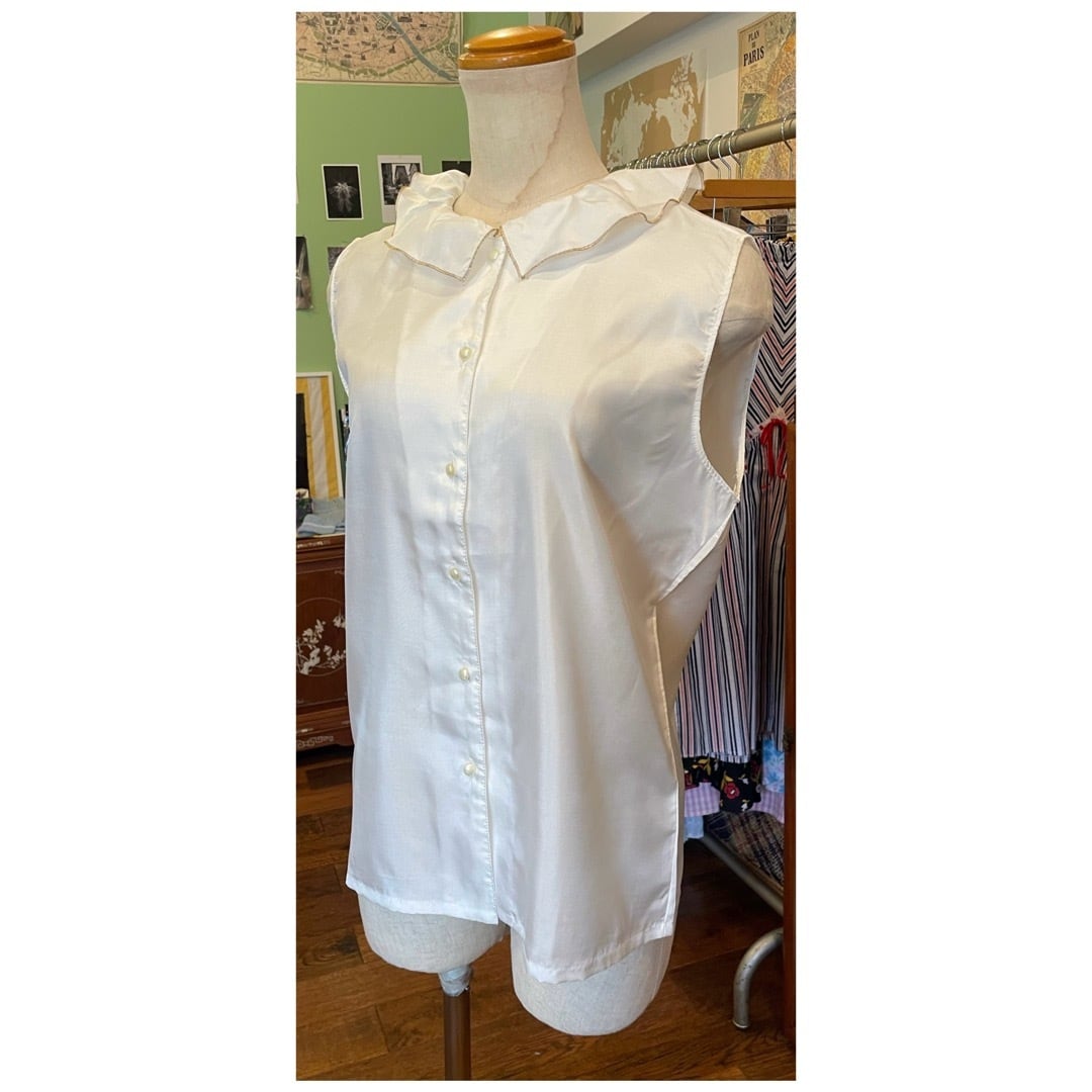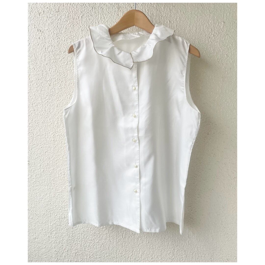 ヴィンテージ フリルブラウス スリーブレス フリル襟 日本製 メロウフリル ホワイト