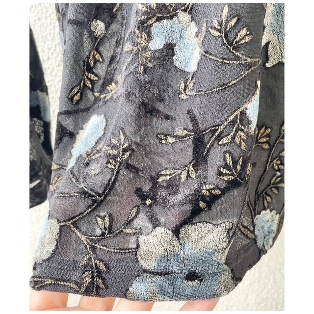 フランス買付 ヴィンテージ トップス ベロア シアー ボタニカル柄 ブラック
