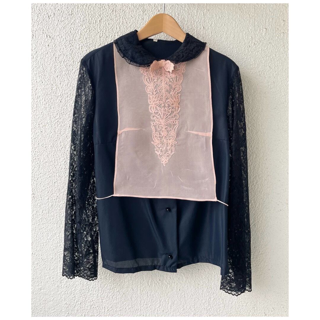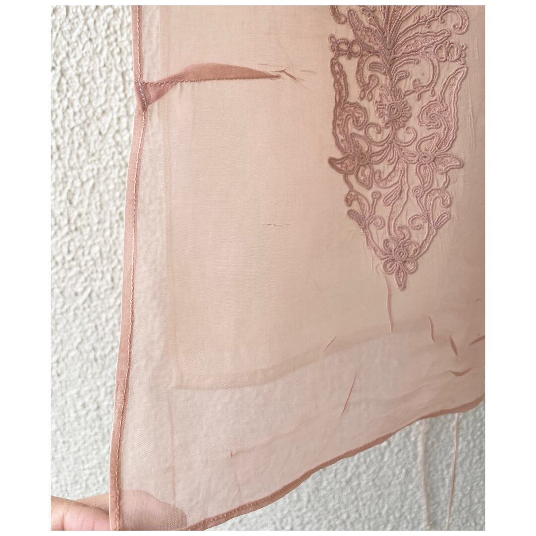 フランスにて買い付けましたディッキーです。ディッキーとはもともと19世紀にタキシードジャケットの下に簡易的な礼装として着用していたアイテムで、20世紀初頭にレディースのオシャレアイテムとして広まったとされています。付け襟や胸当て的なものなので、袖はなく、両サイドは紐で結ぶ仕様になっています。こちらは透け感のある淡いサーモンピンクカラーに、フロント刺繍とリボンのアクセントが素敵♡