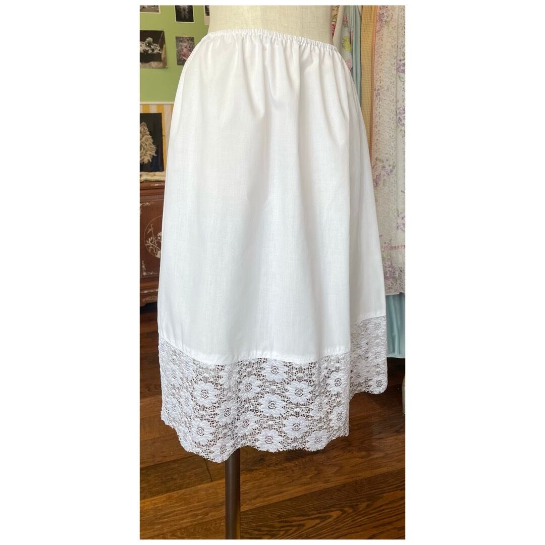フランス買付 ヴィンテージ ギャザースカート ペチコート 裾レース フラワーレース ホワイト