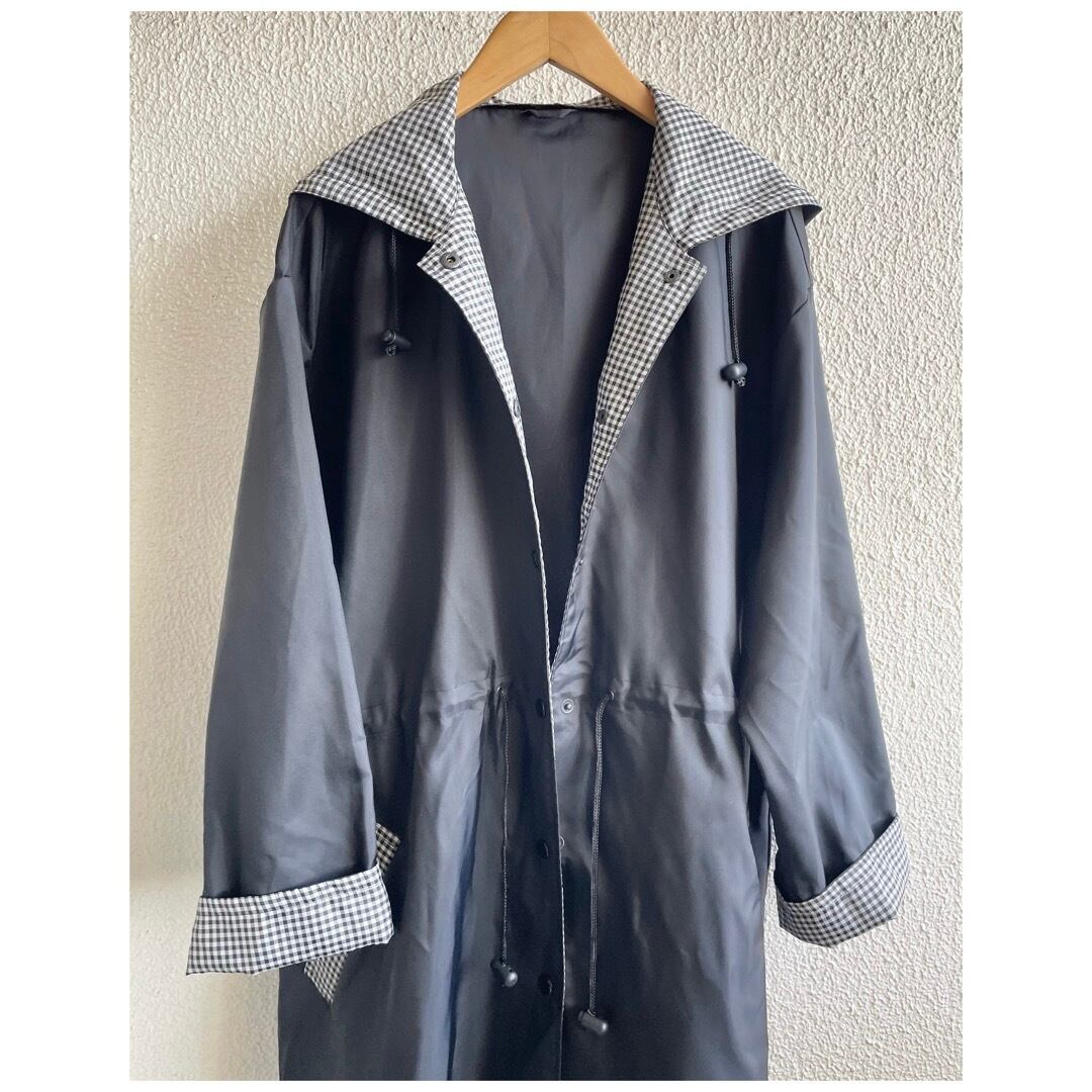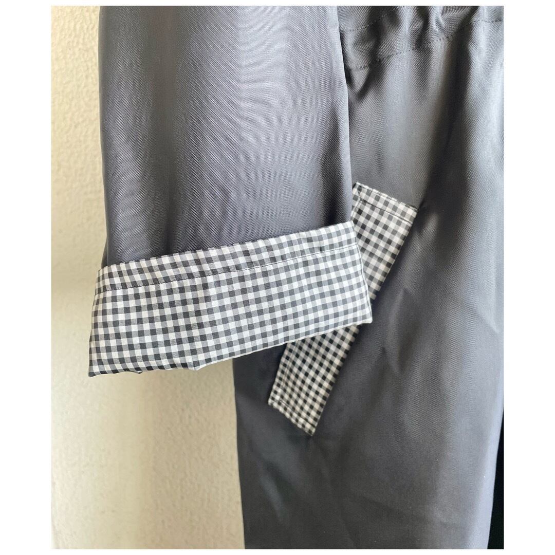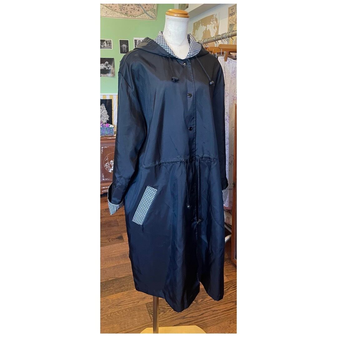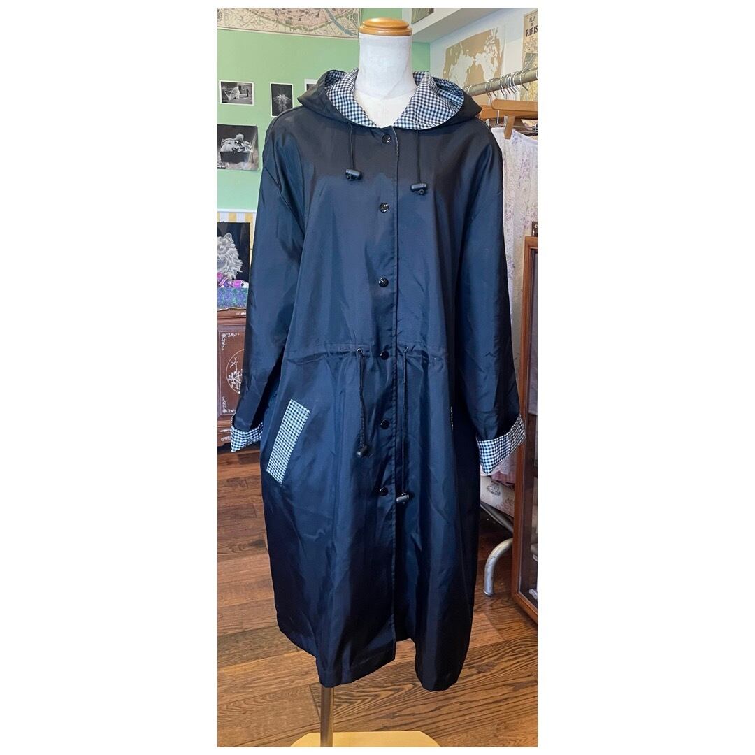 ヴィンテージ ナイロンコート ライトアウター フーディー ロールアップ袖 撥水 ギンガムチェック ブラック