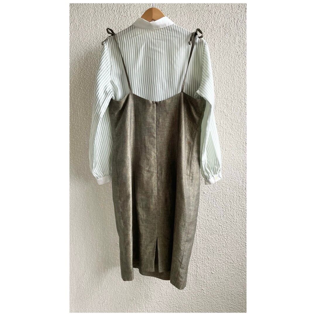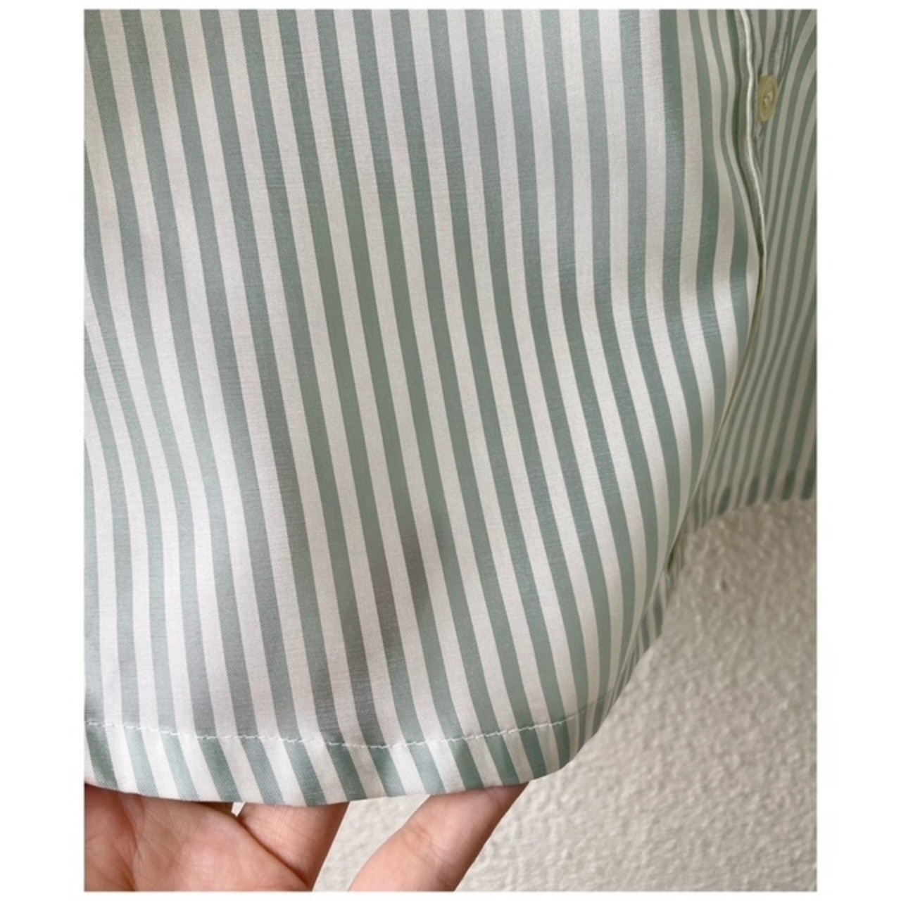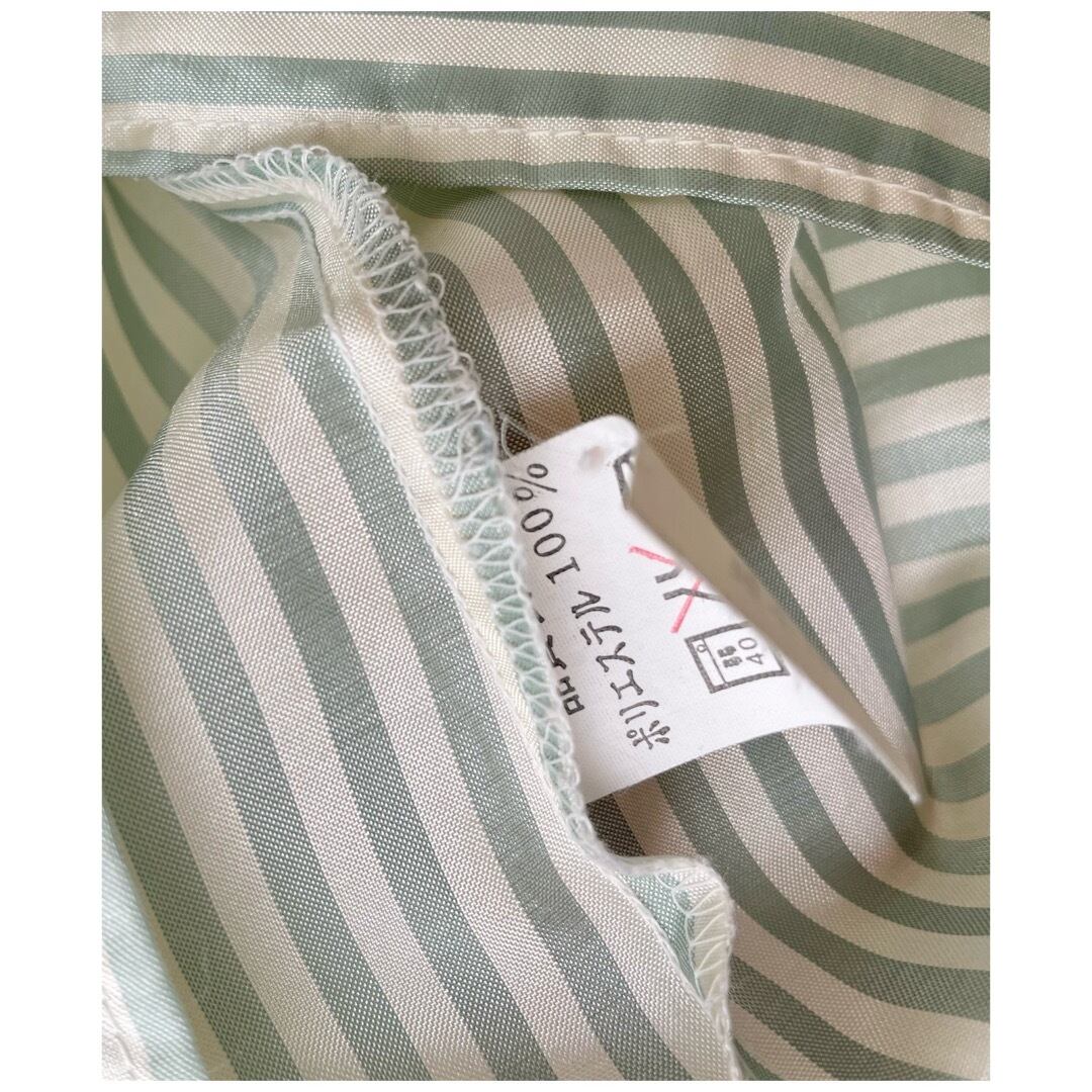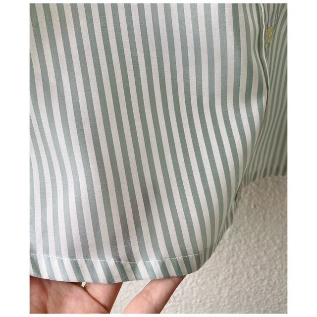 ヴィンテージ ブラウス 丸襟 白襟 ストライプ 日本製 光沢 ミントグリーン