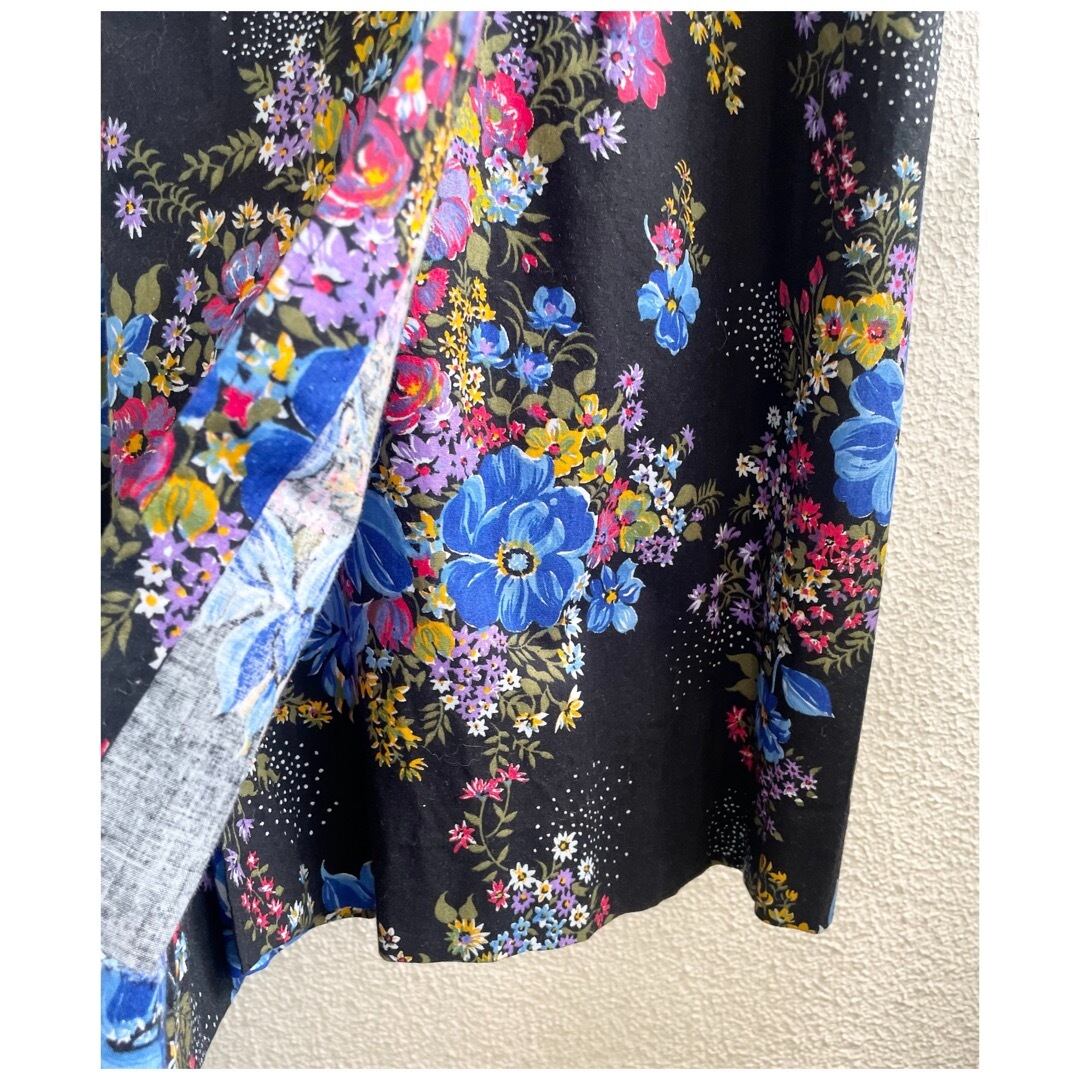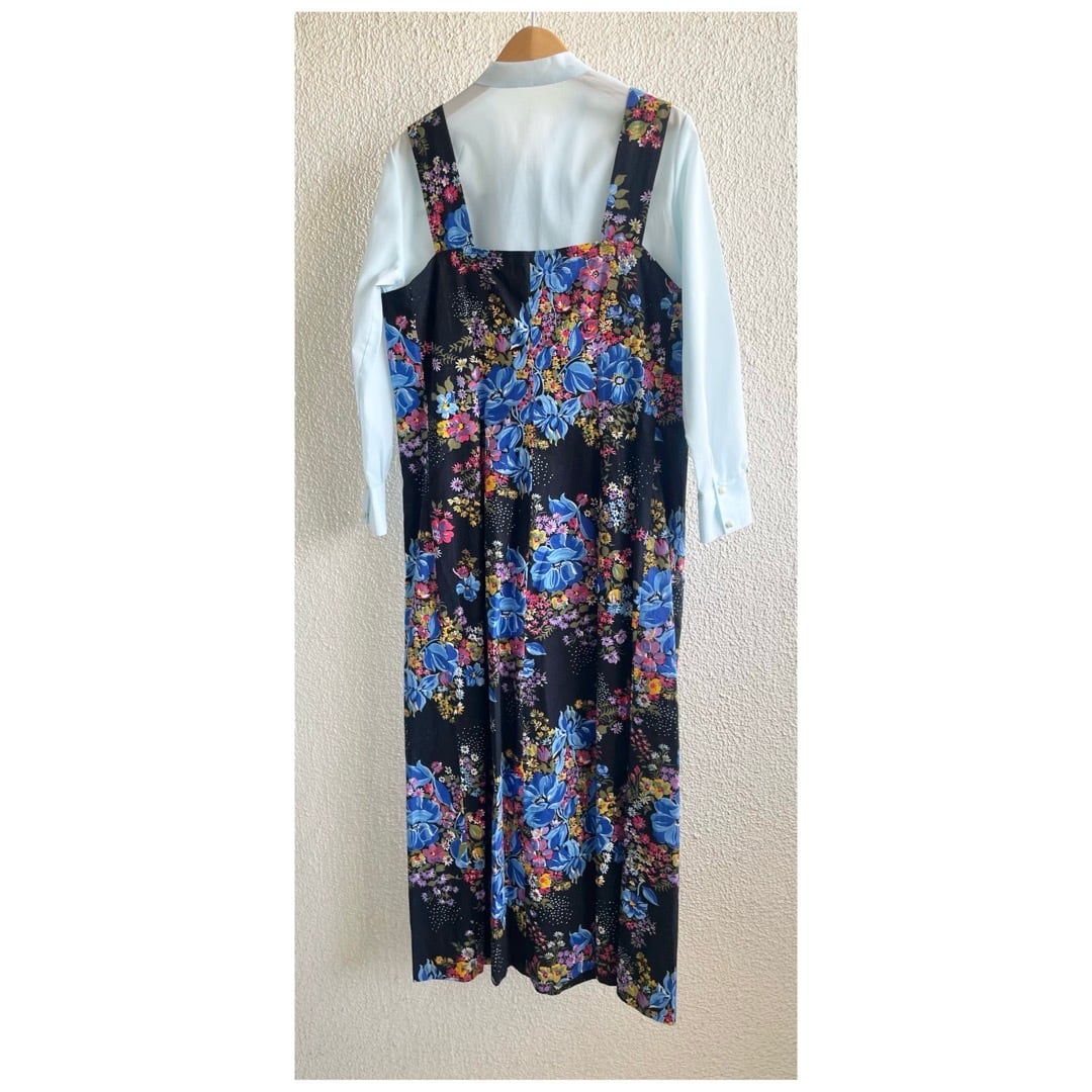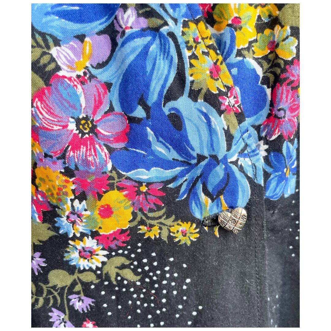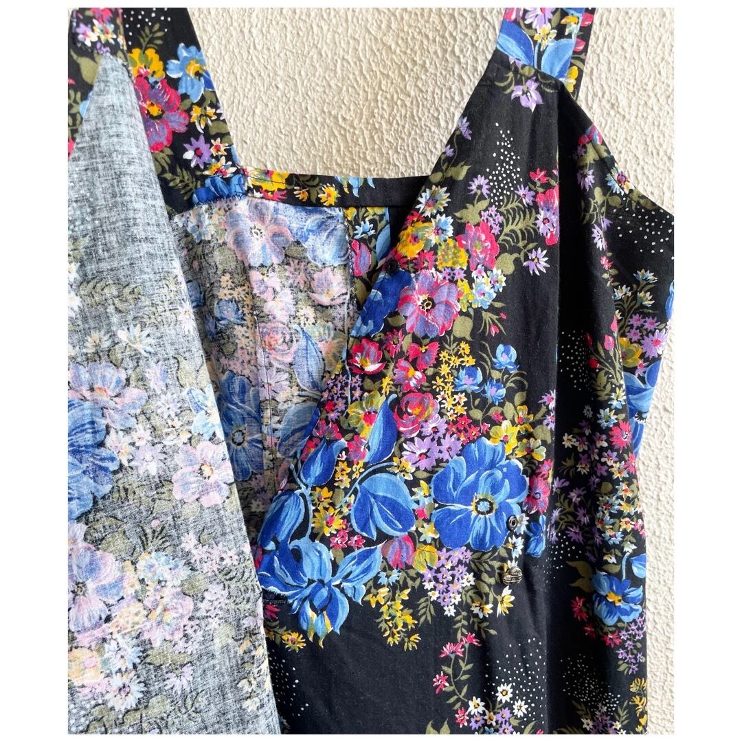 フランス買付 ヴィンテージ ワンピース エプロンドレス コットン ハートボタン 花柄 ブラックベース
