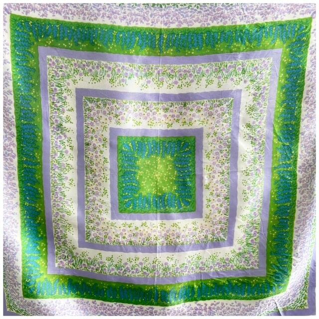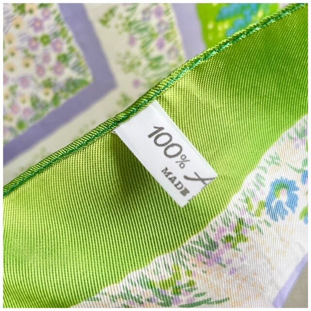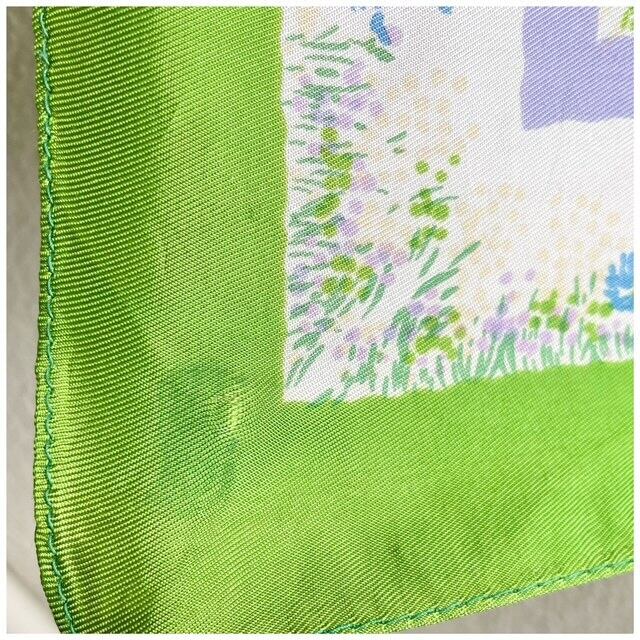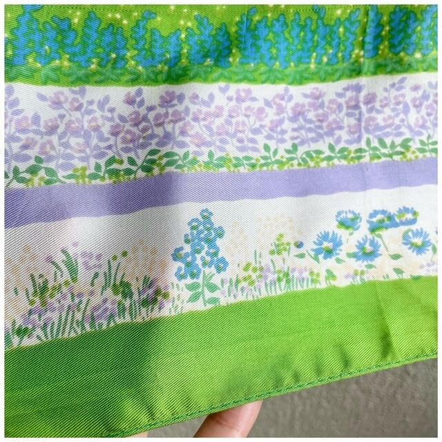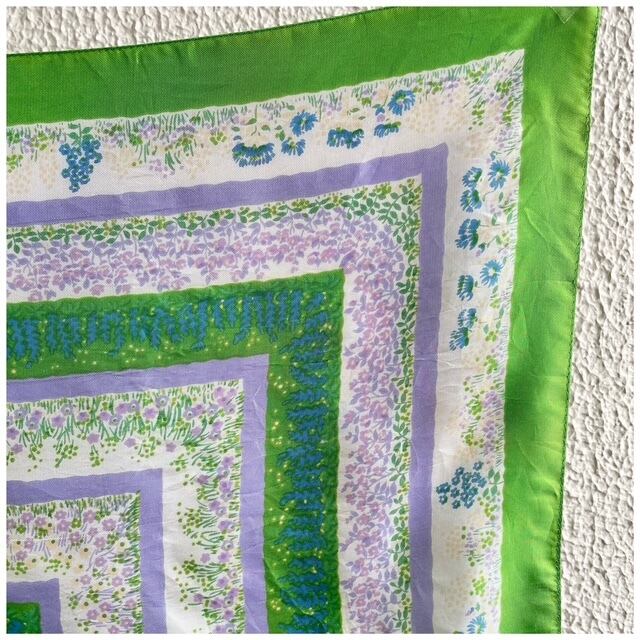 フランス買付 ヴィンテージ スカーフ 花柄 フレーム 春カラー ライムグリーン