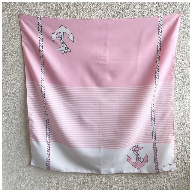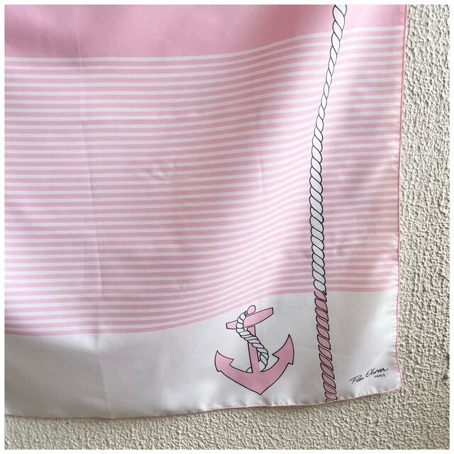フランス買付 ヴィンテージ スカーフ ストライプ マリン ベビーピンク