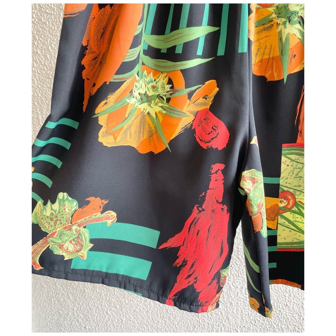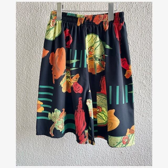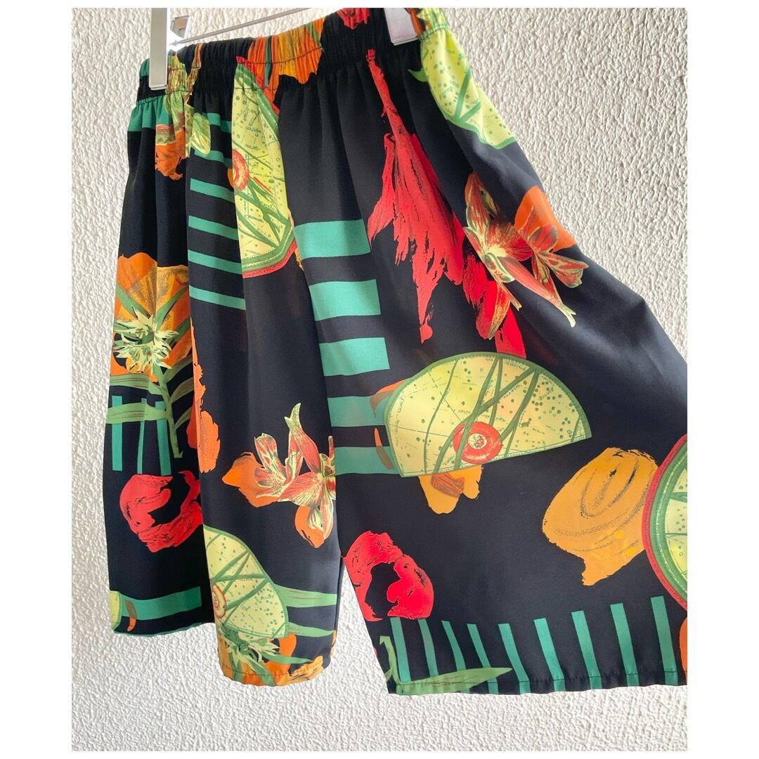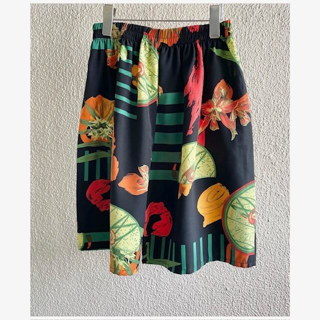 フランス買付 ヴィンテージ ハーフパンツ サマーパンツ 柄パン ブラックベース