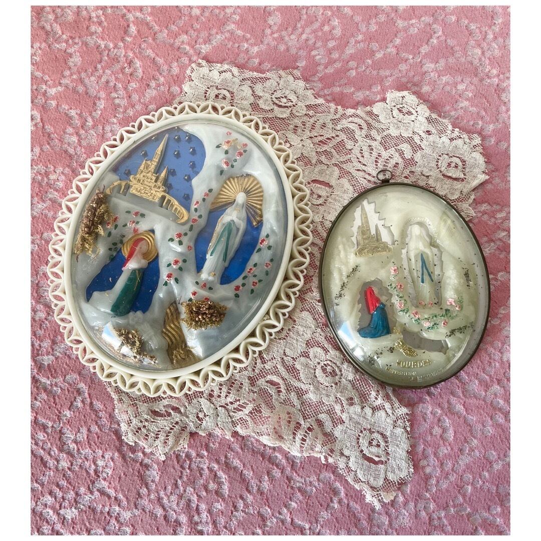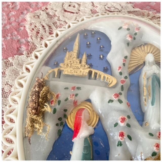 フランス ヴィンテージ ウォールデコ ガラスドーム 壁掛け ルルドの泉 マリア様