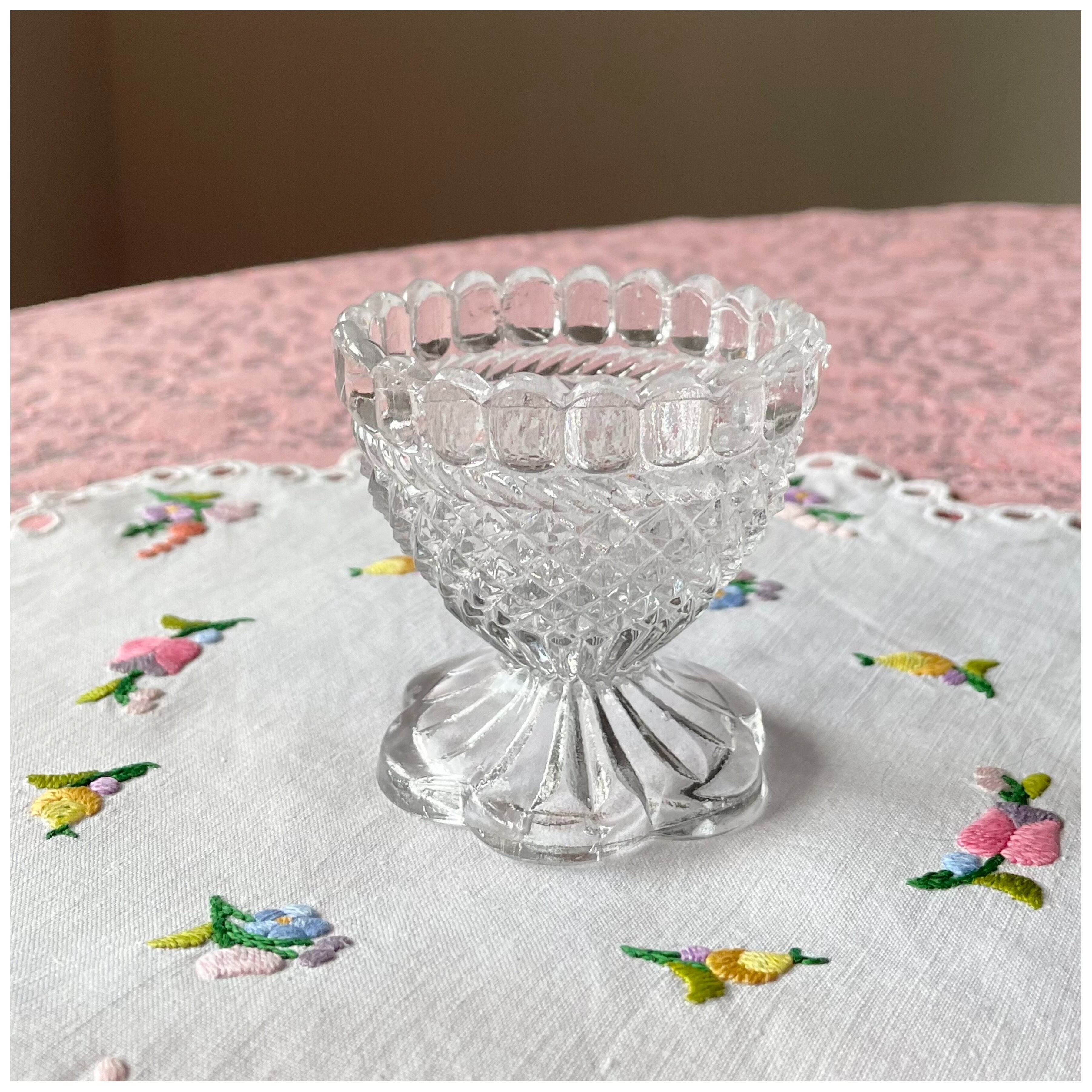 フランス ヴィンテージ ガラスウェア デザートグラス ミニボウル 脚付き スカラップ
