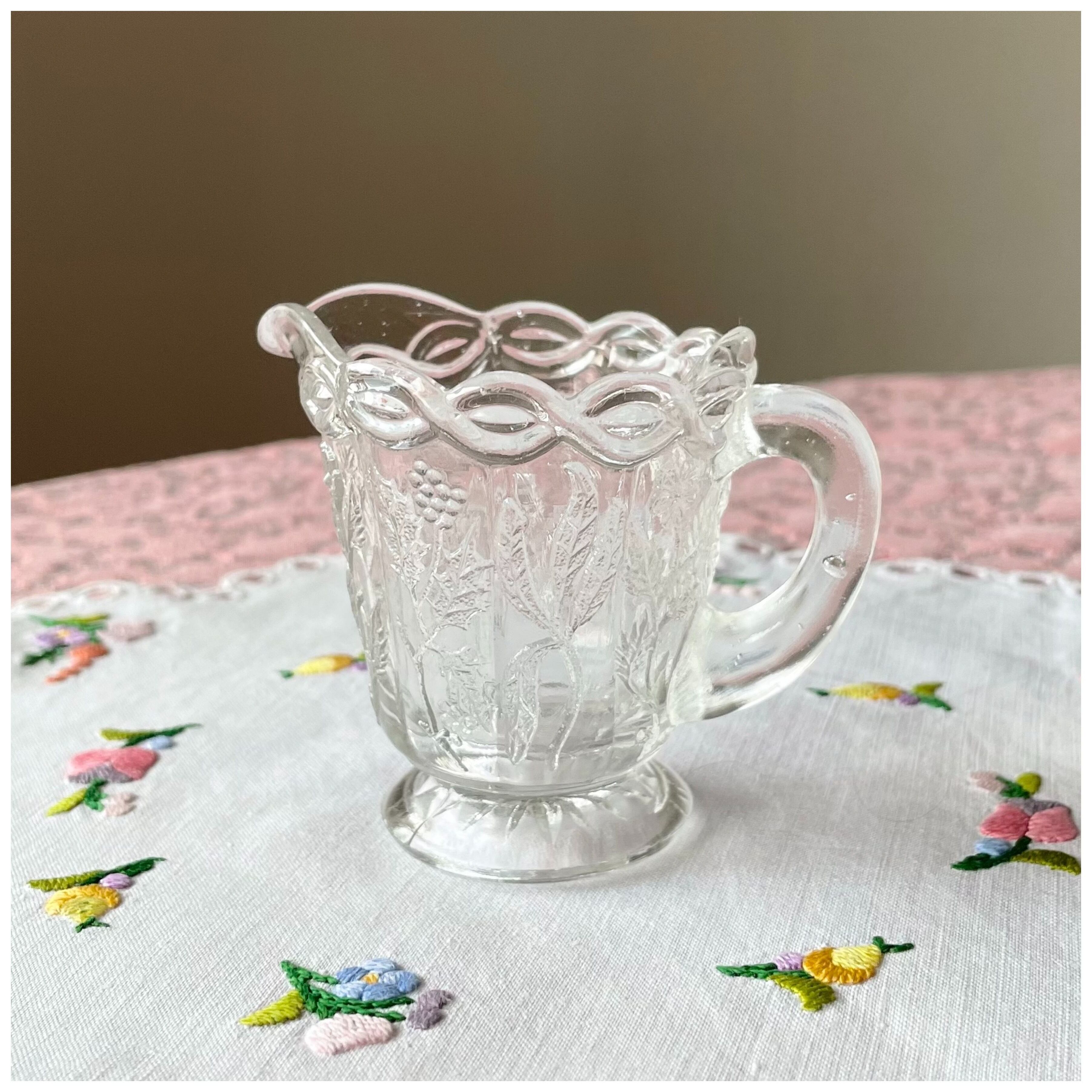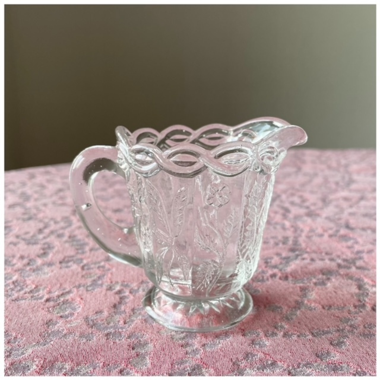 フランス ヴィンテージ ガラスウェア プレスガラス ミルクピッチャー お花模様