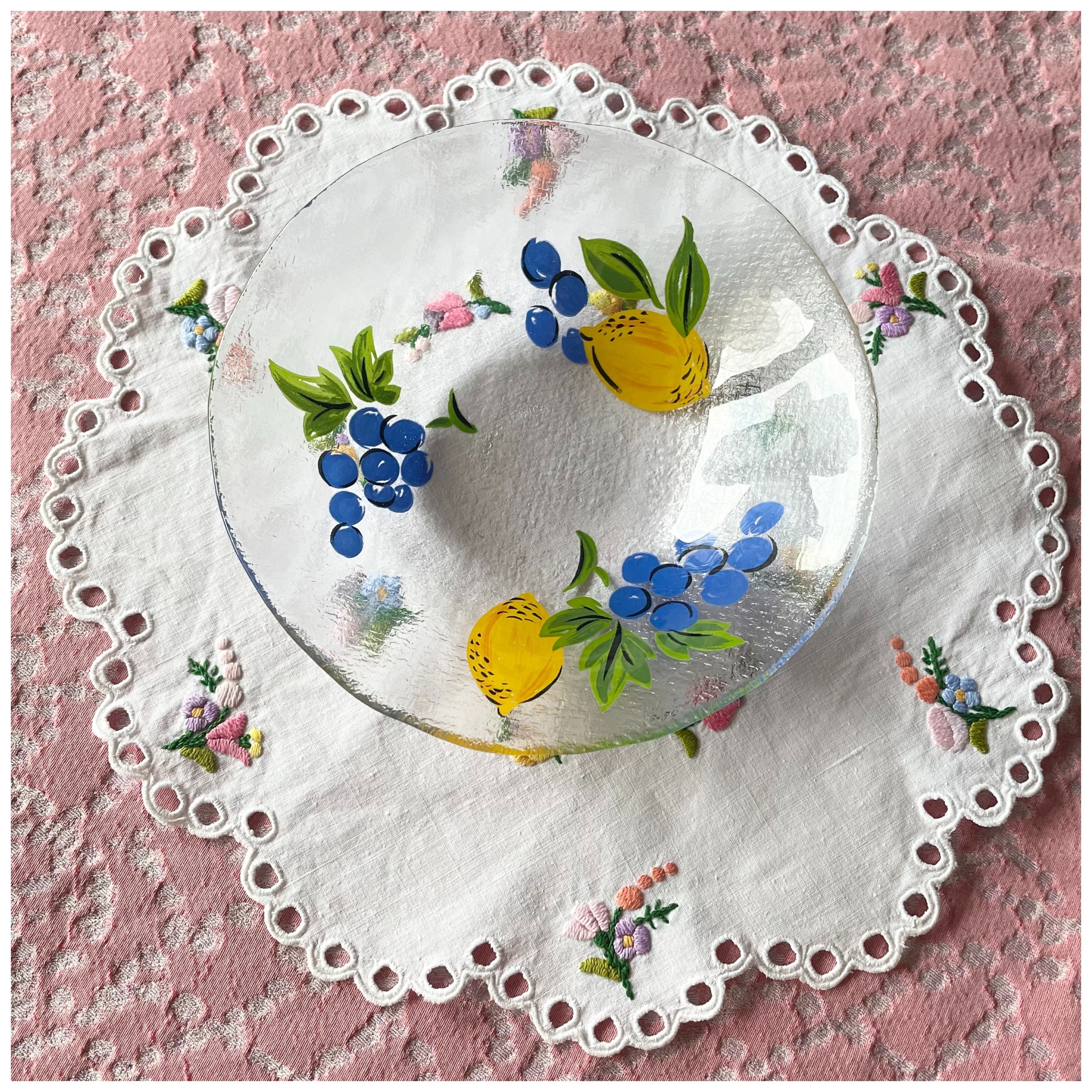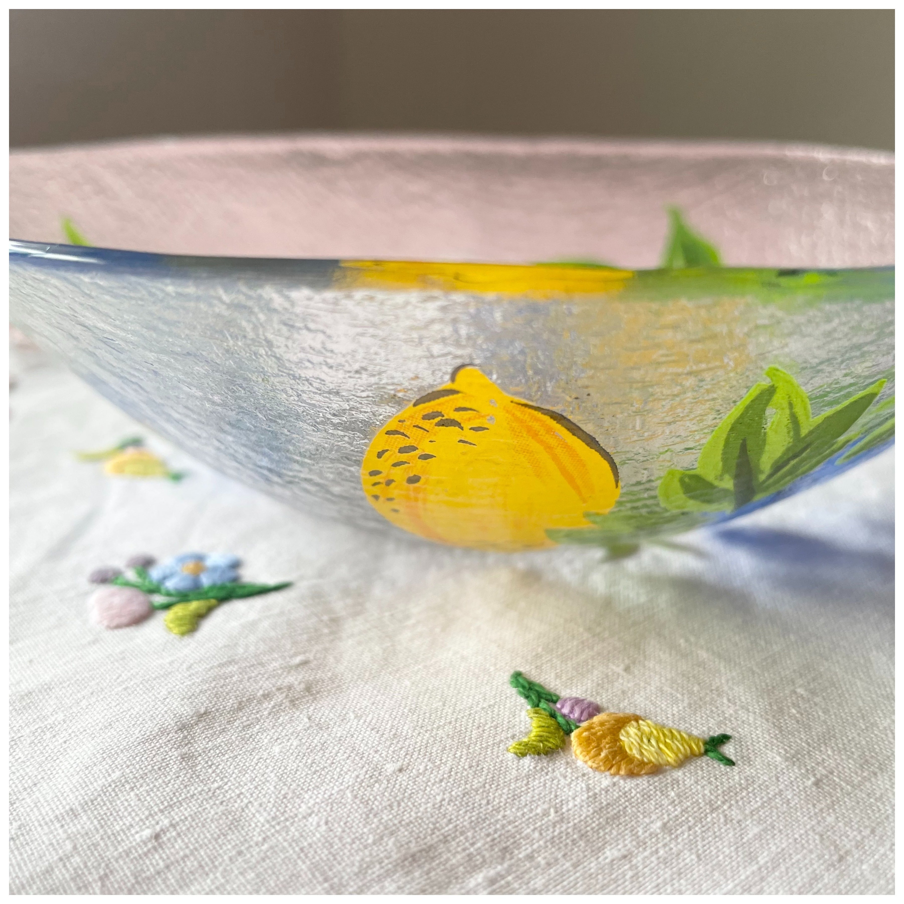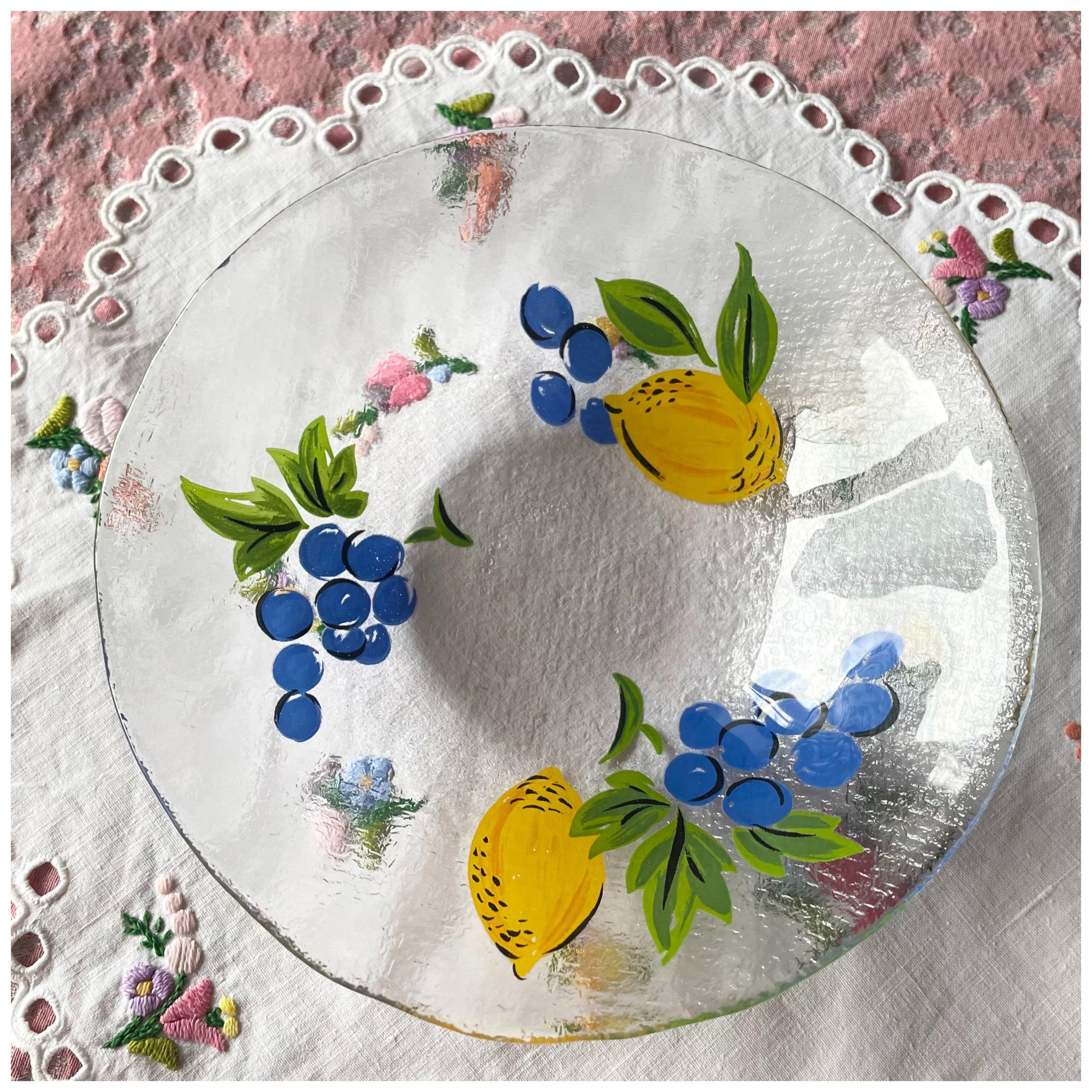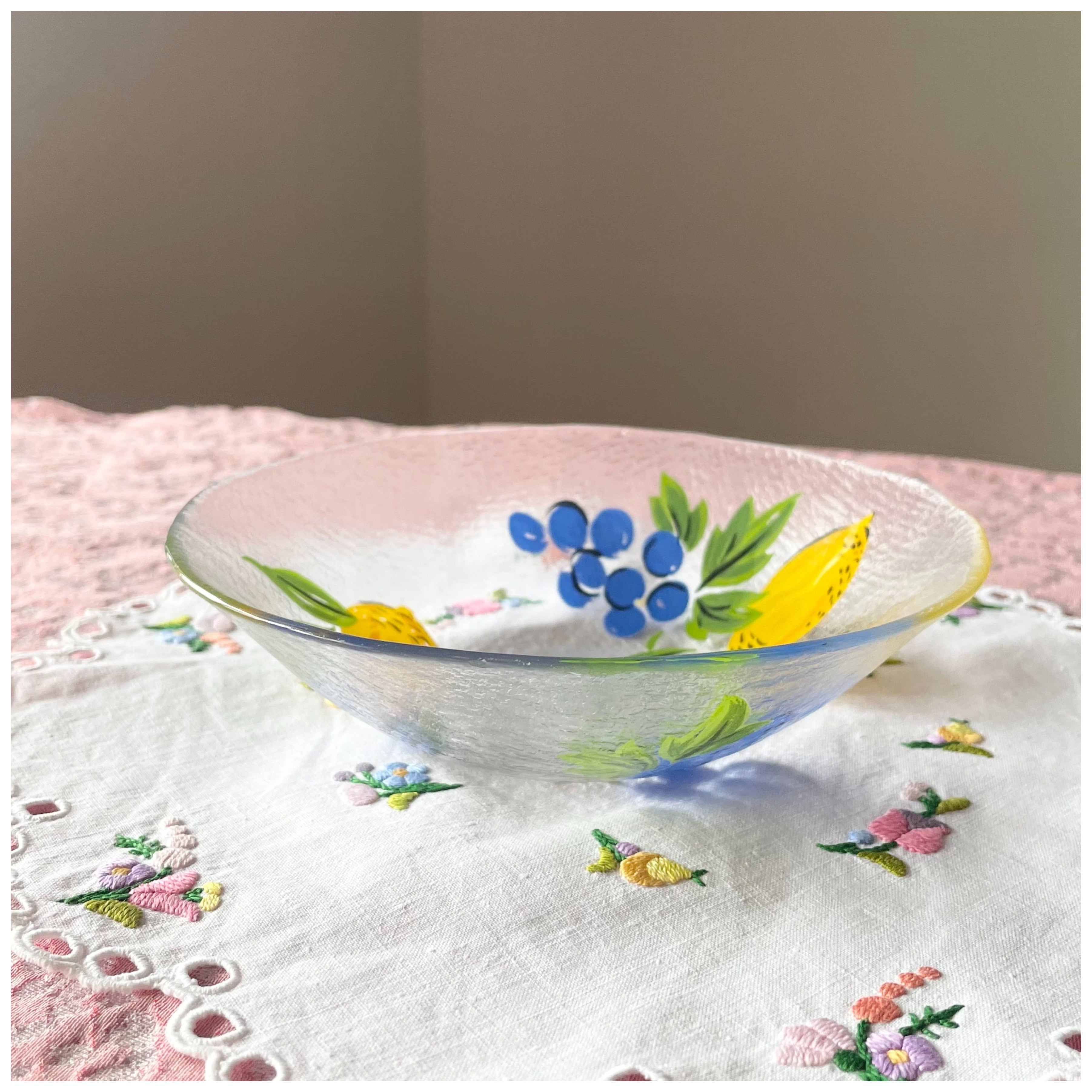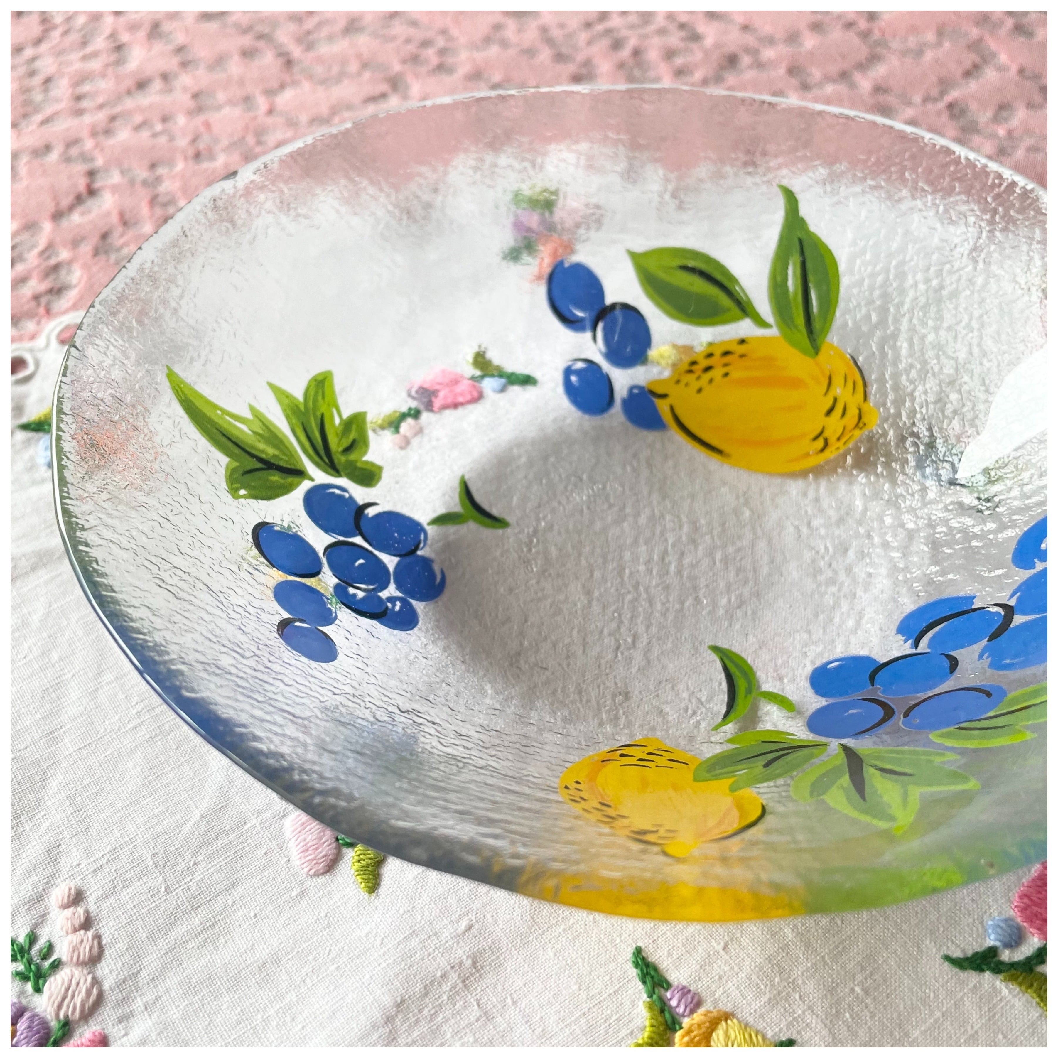 フランス ヴィンテージ ガラスウェア ガラスボウル アルコロック レモン ブドウ フルーツ柄
