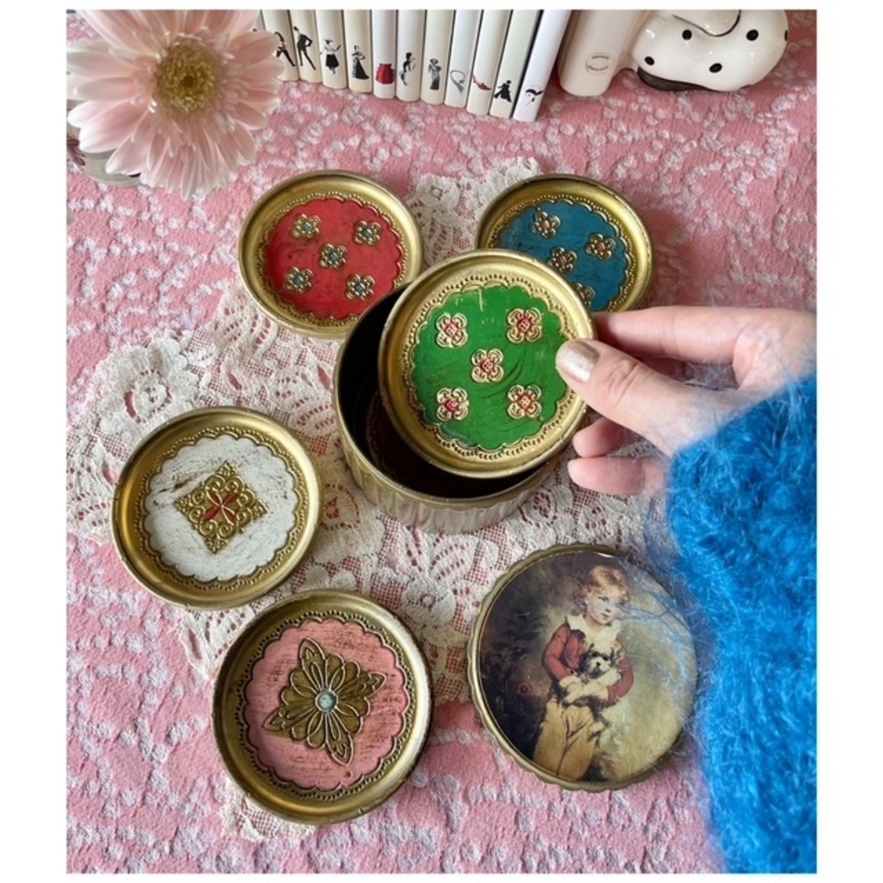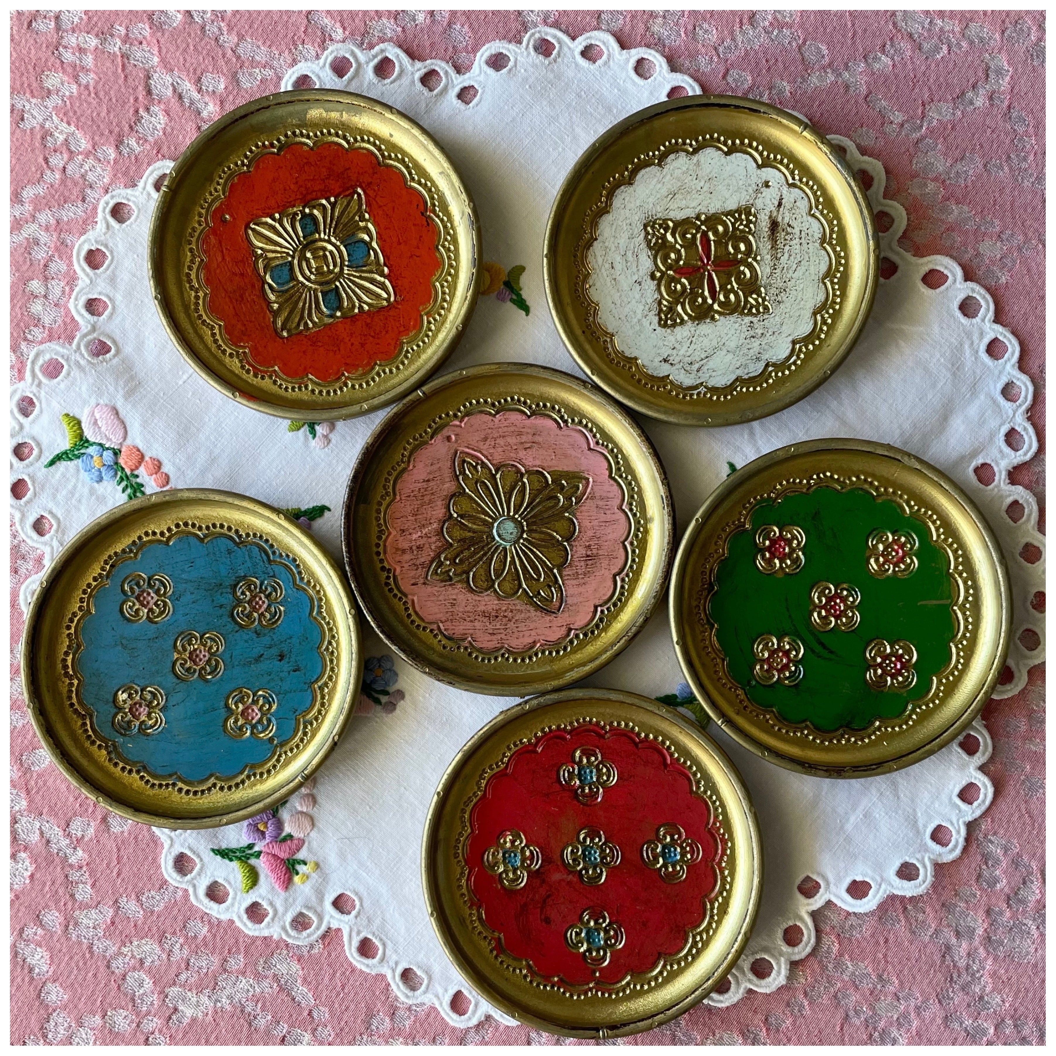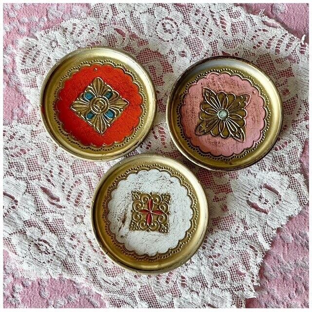 フランス ヴィンテージ ウッドコースター ボックス ペイント 6枚セット