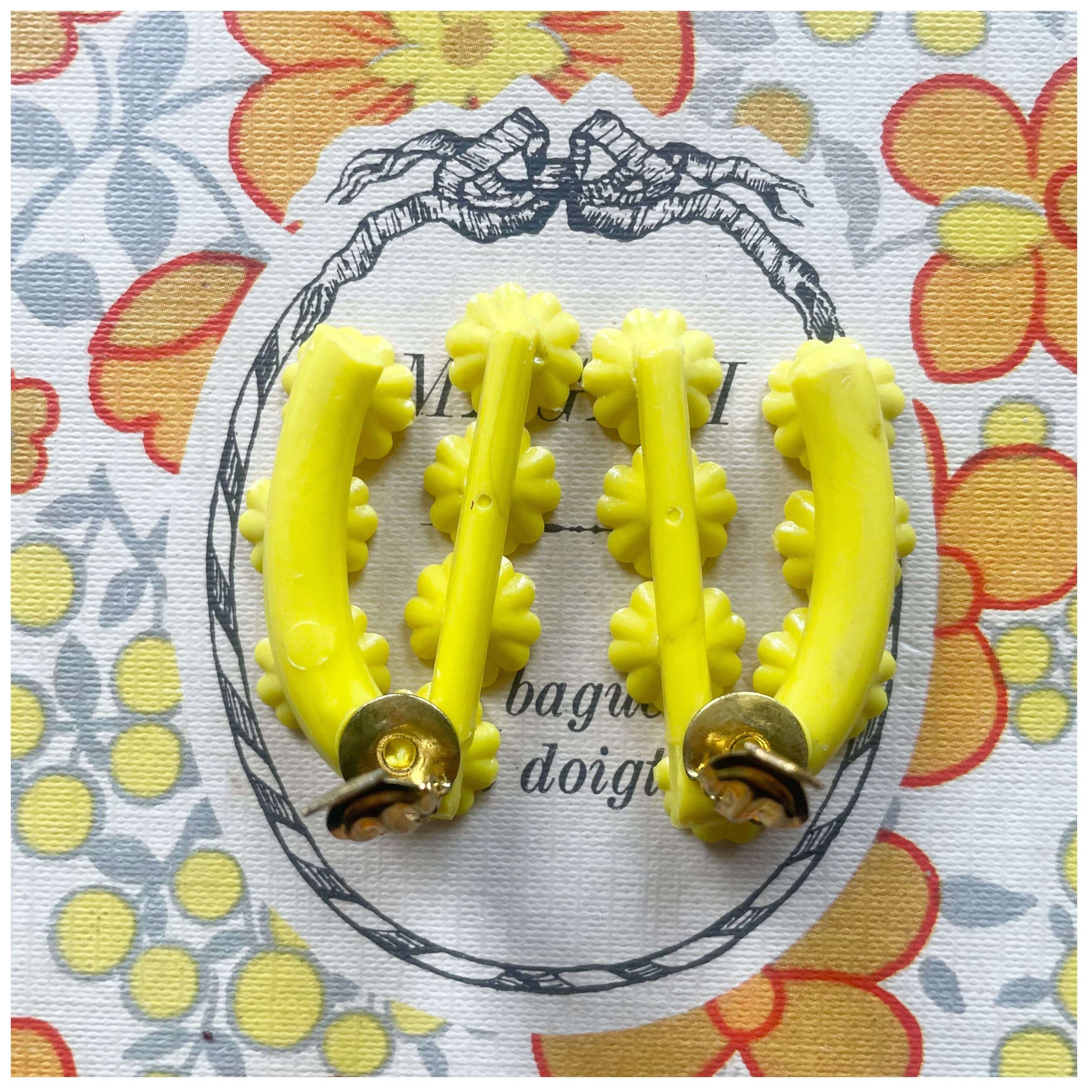 フランス ヴィンテージ デッドストック イヤリング フラワー イエロー