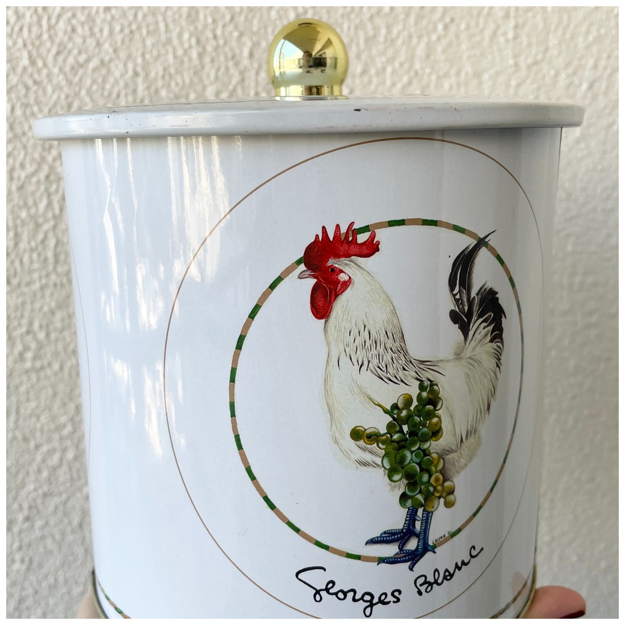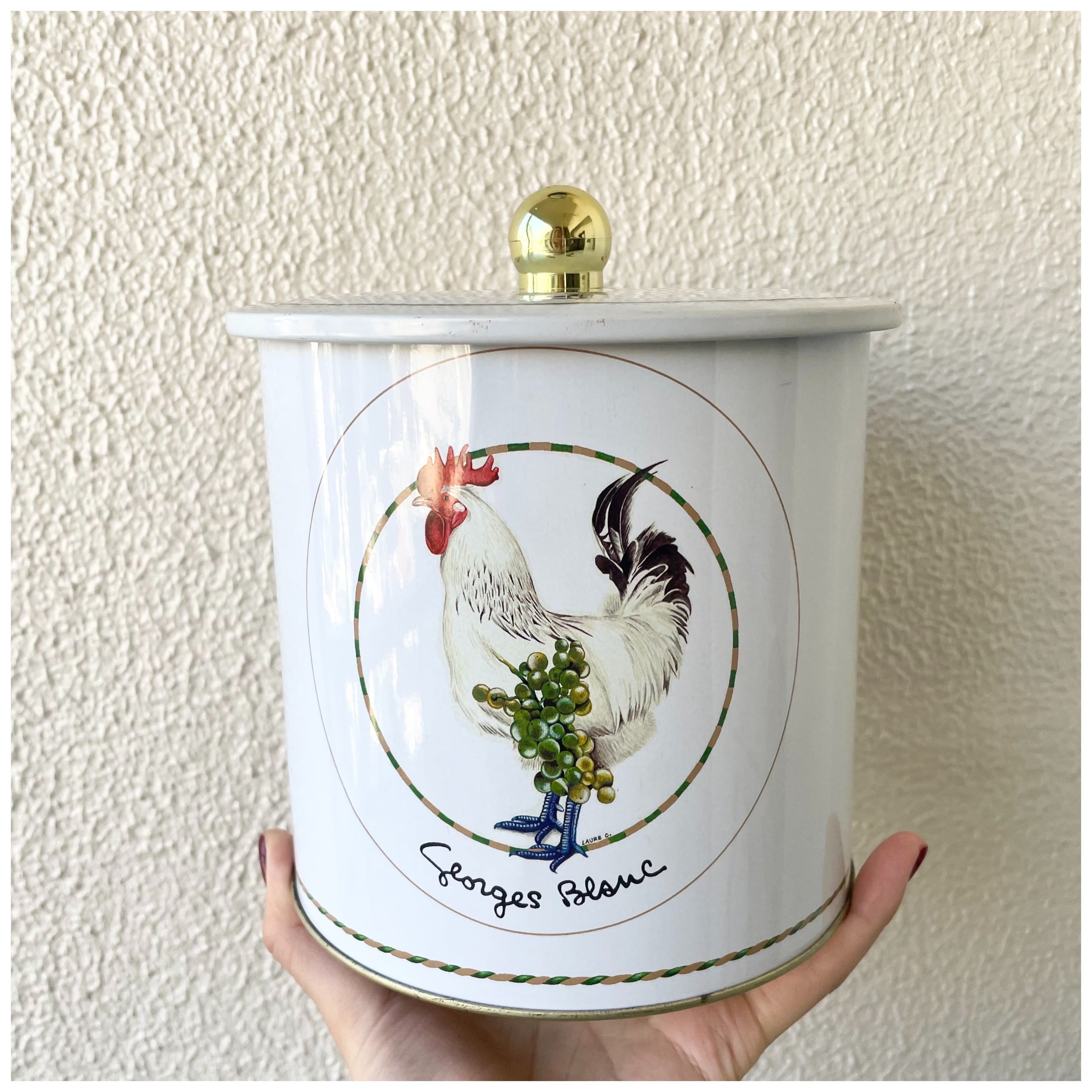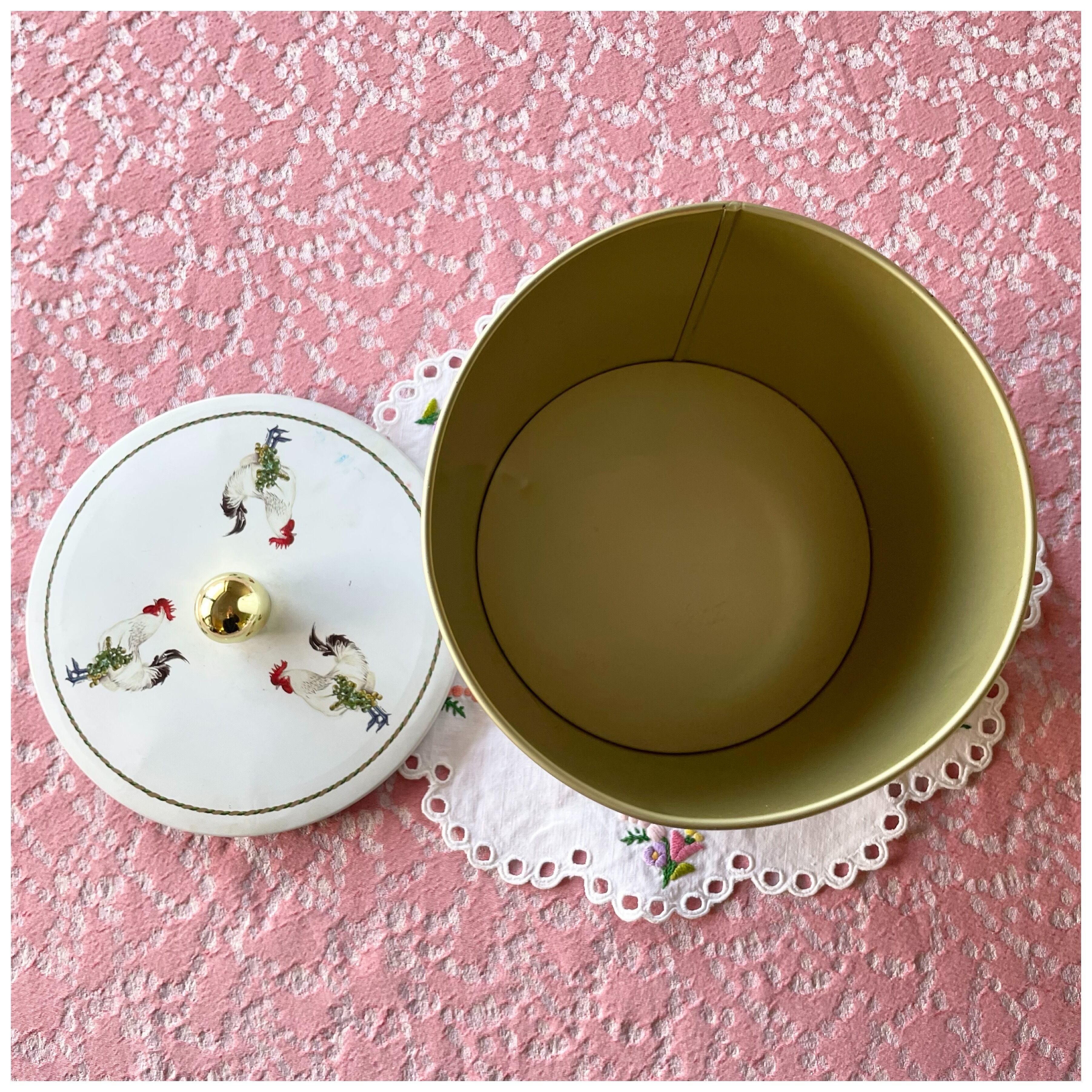 フランス ヴィンテージ ティン缶 ビスケット缶 ニワトリ つまみ蓋 乾燥剤入り