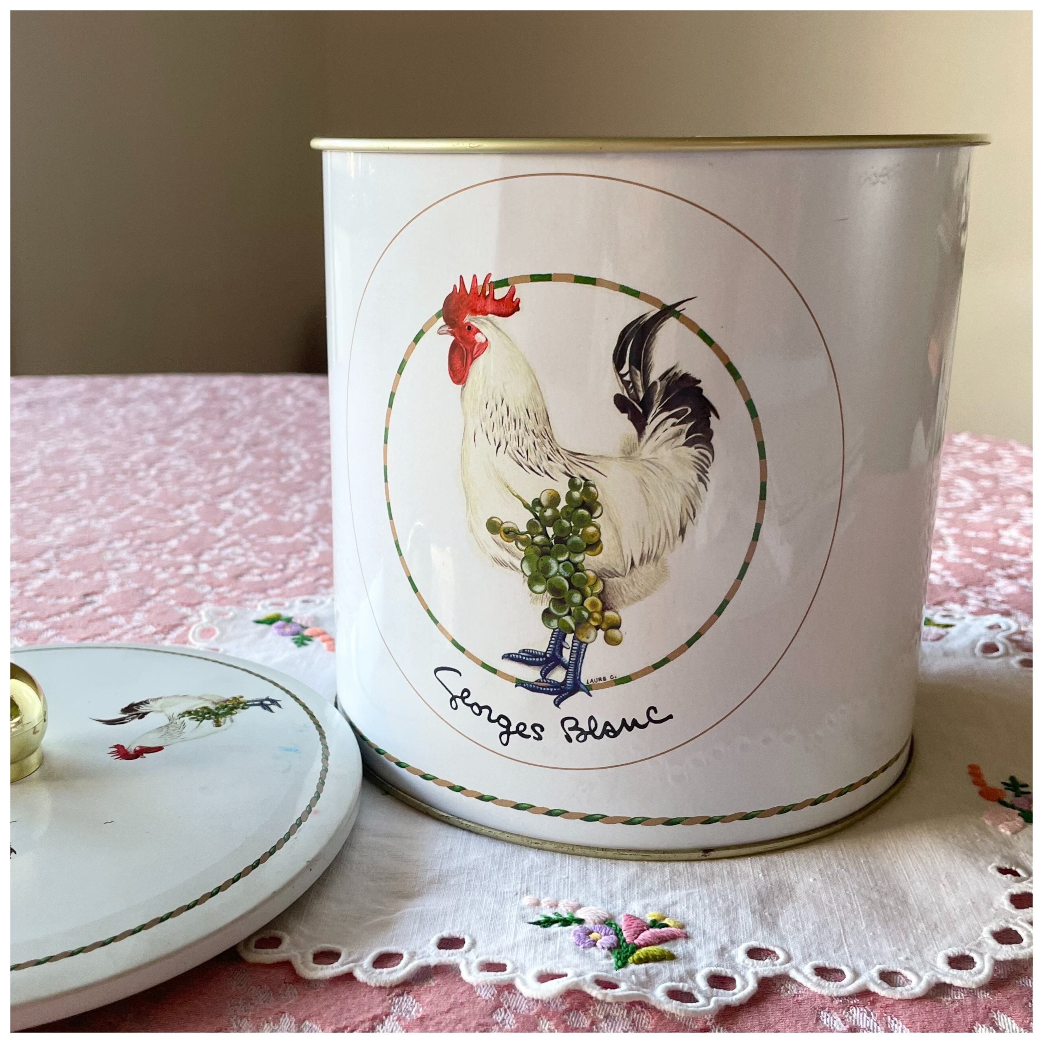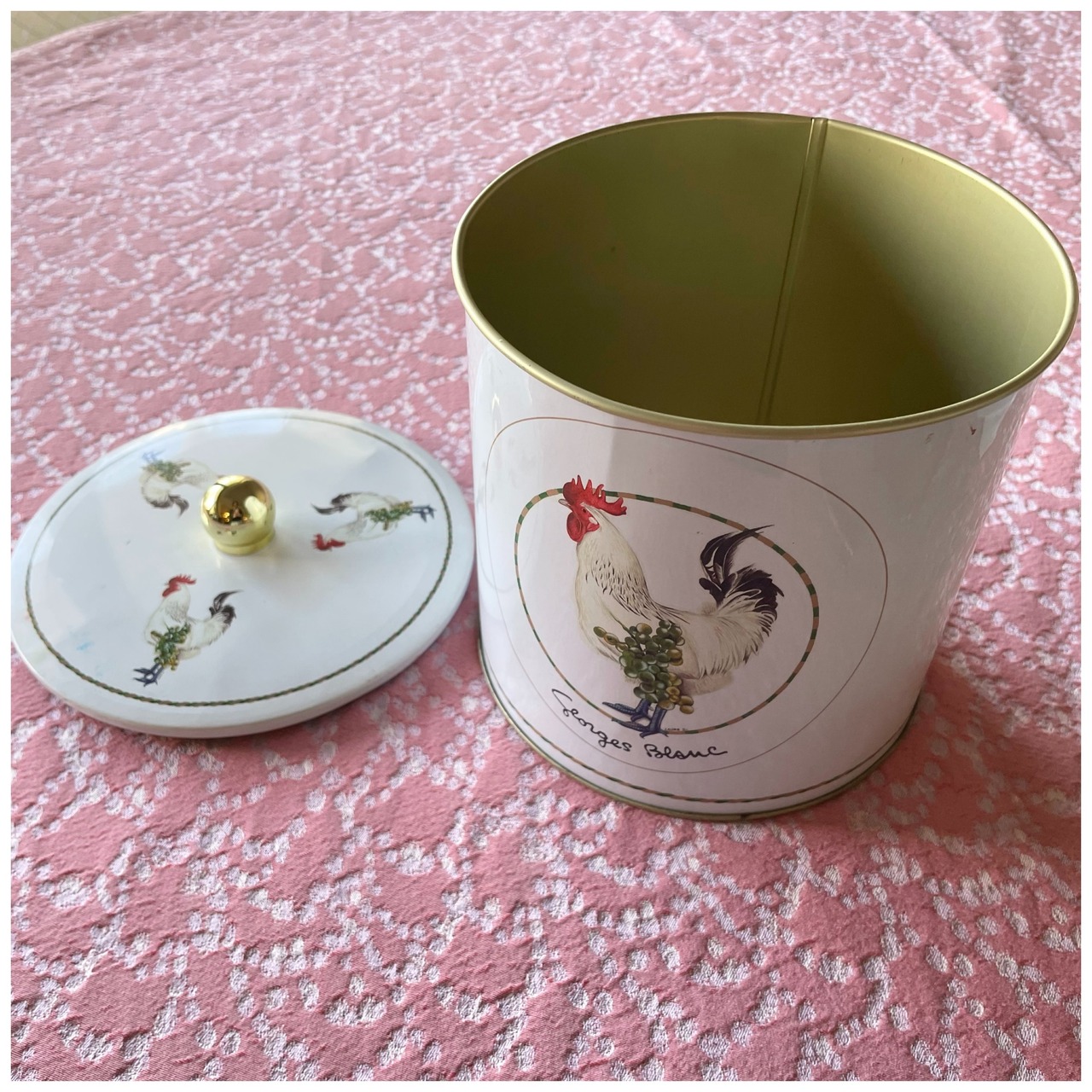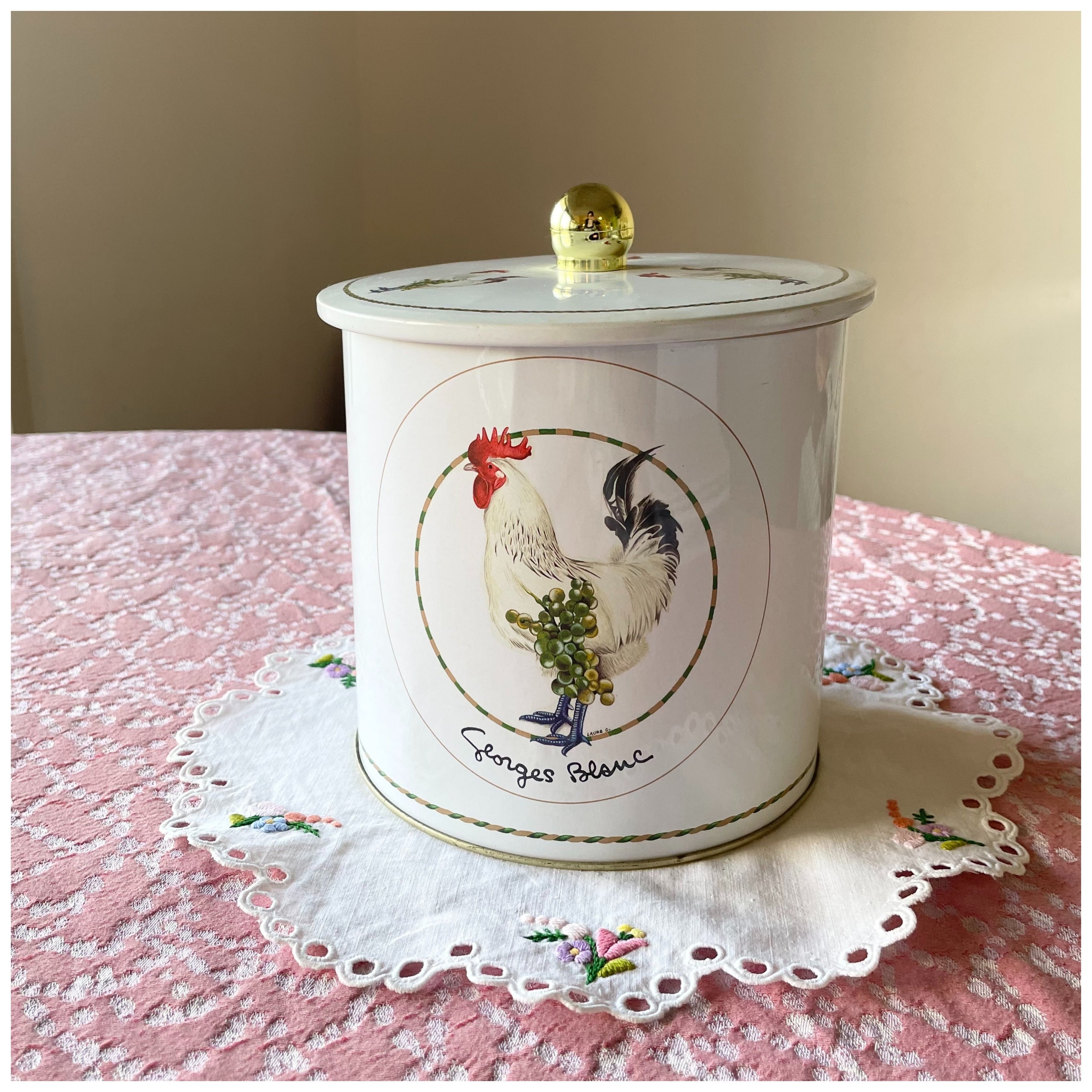 フランス ヴィンテージ ティン缶 ビスケット缶 ニワトリ つまみ蓋 乾燥剤入り