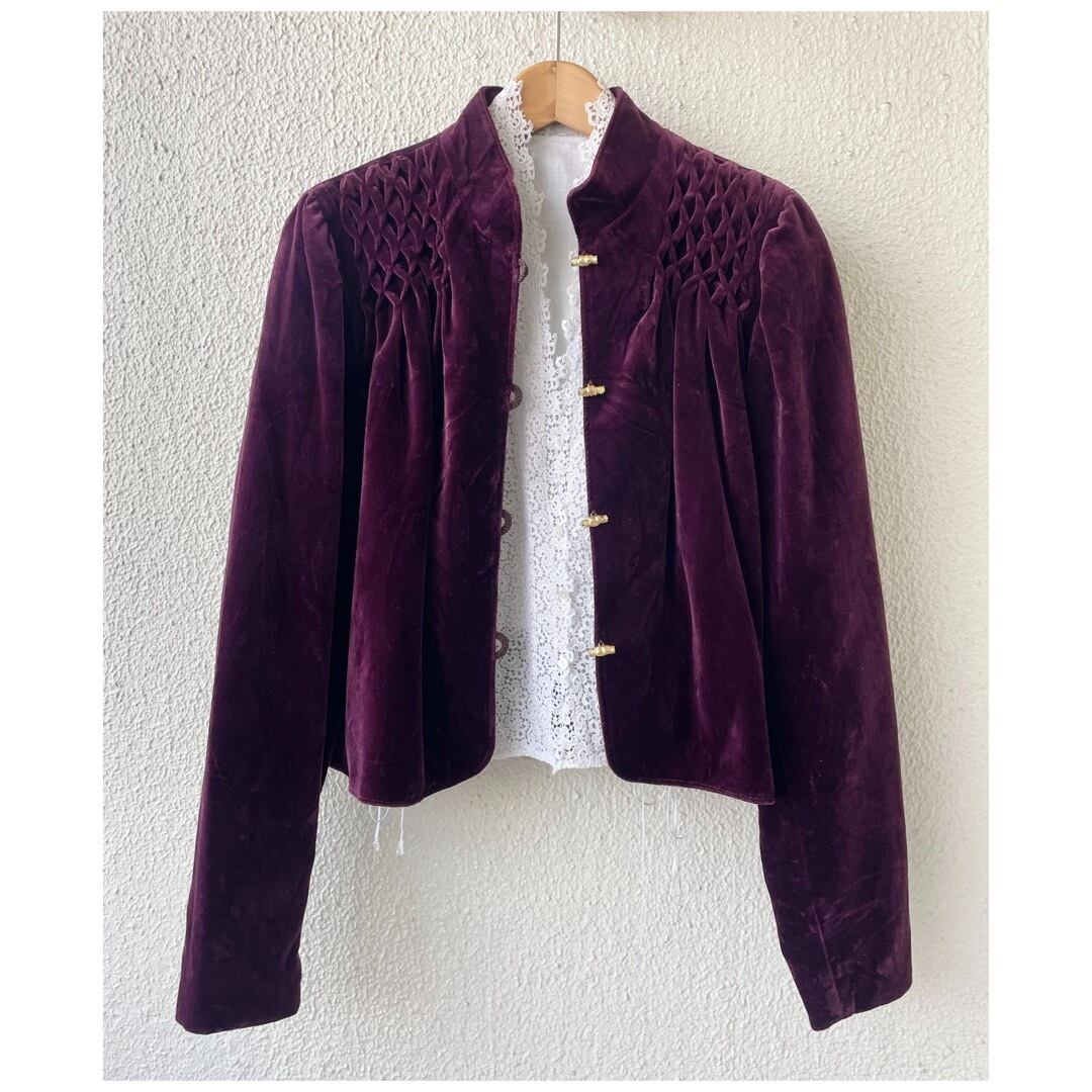 フランス買付 ヴィンテージ ジャケット ベロア スモッキング プラムカラー