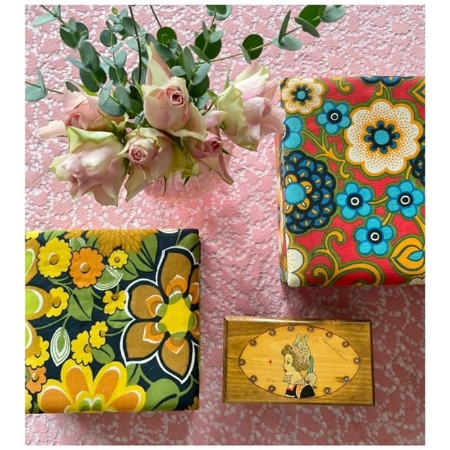 フランス ヴィンテージ カルトナージュ ボックス フラワー 正方形