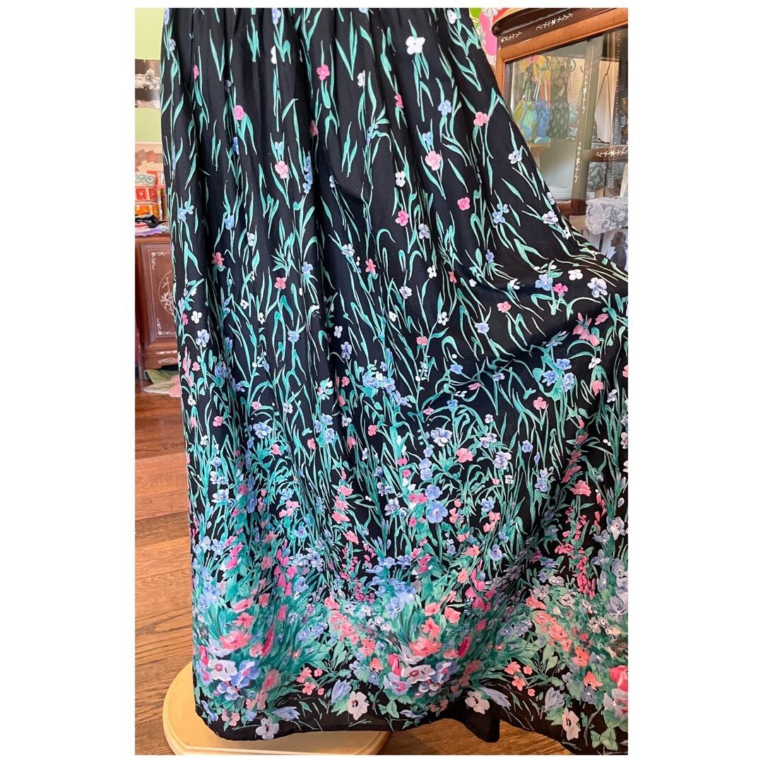 フランス ヴィンテージ ロングスカート ブラックベース マキシ丈 花柄