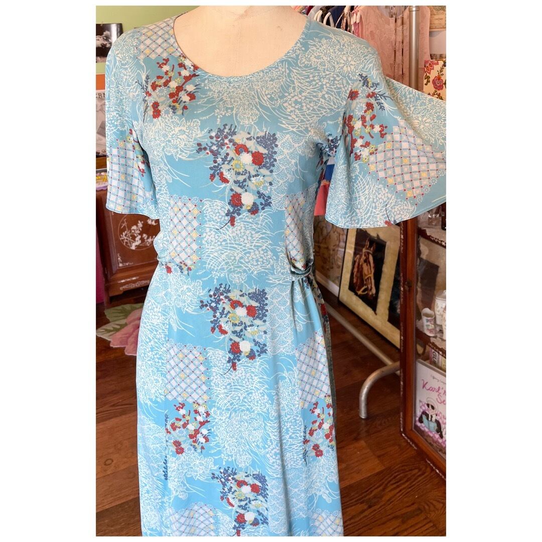 フランス ヴィンテージ ワンピース サマーワンピース フレアスリーブ 水色