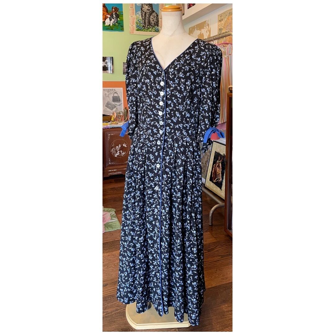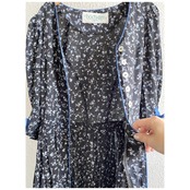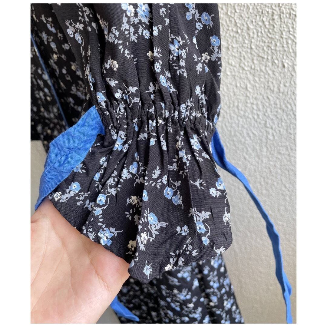フランス ヴィンテージ ワンピース パフスリーブ 前開き パイピング 袖リボン 小花
