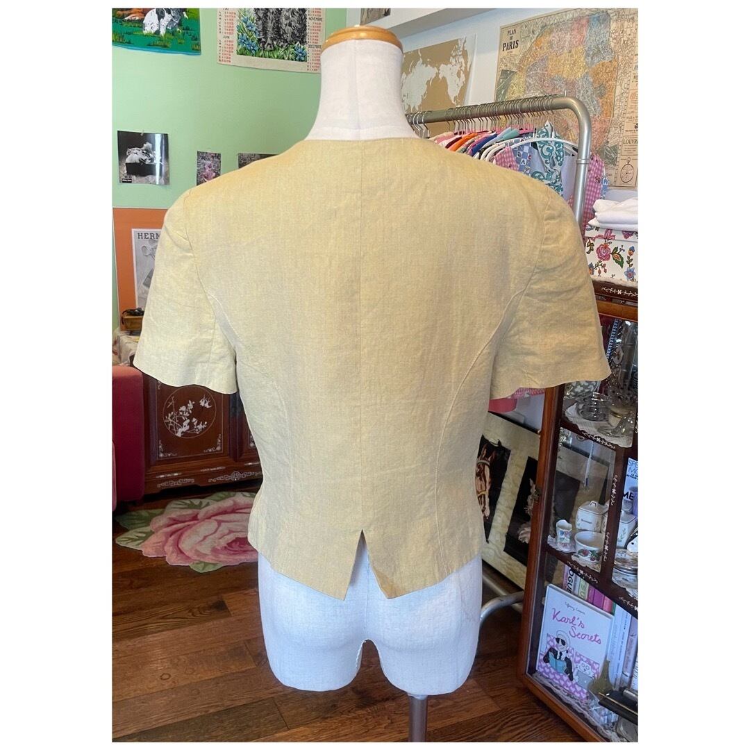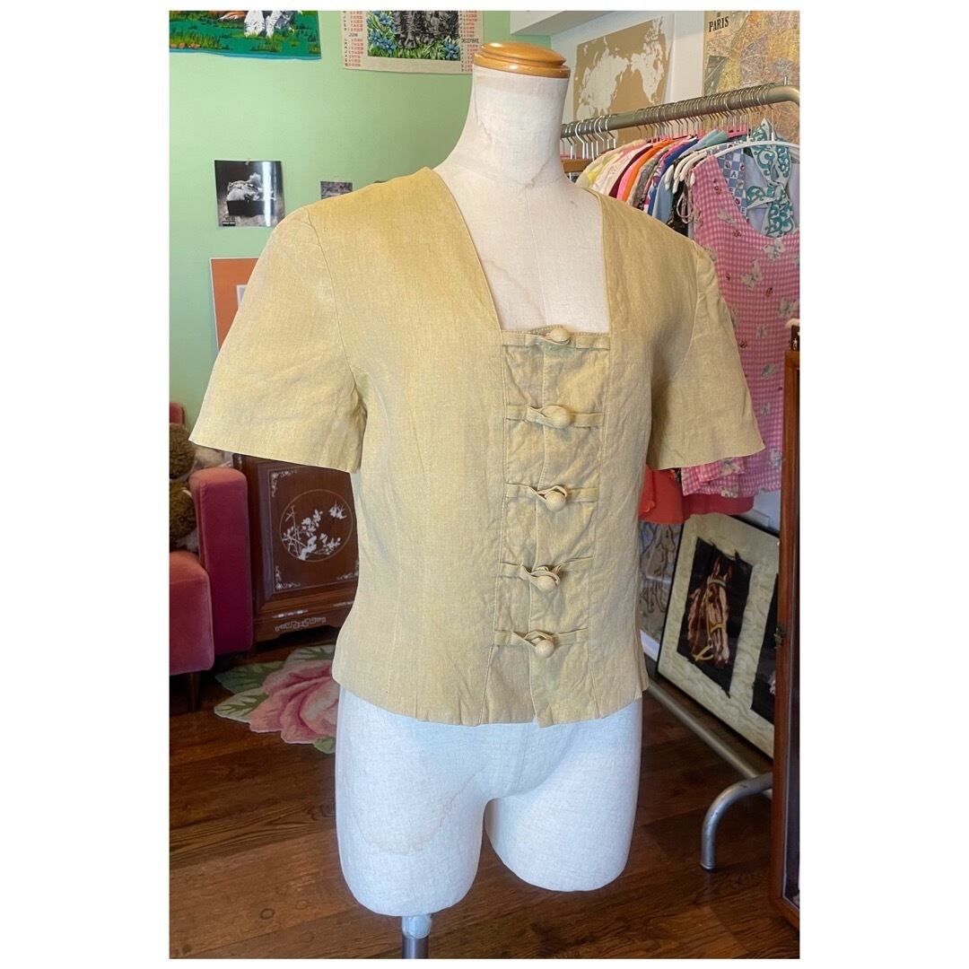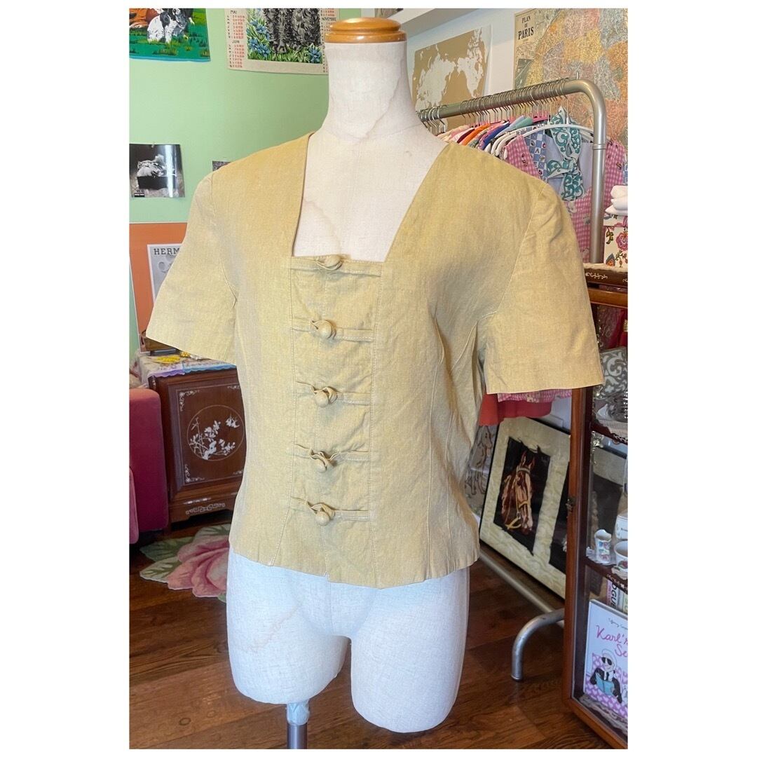 フランス ヴィンテージ サマージャケット リネン スクエアネック イエローベージュ