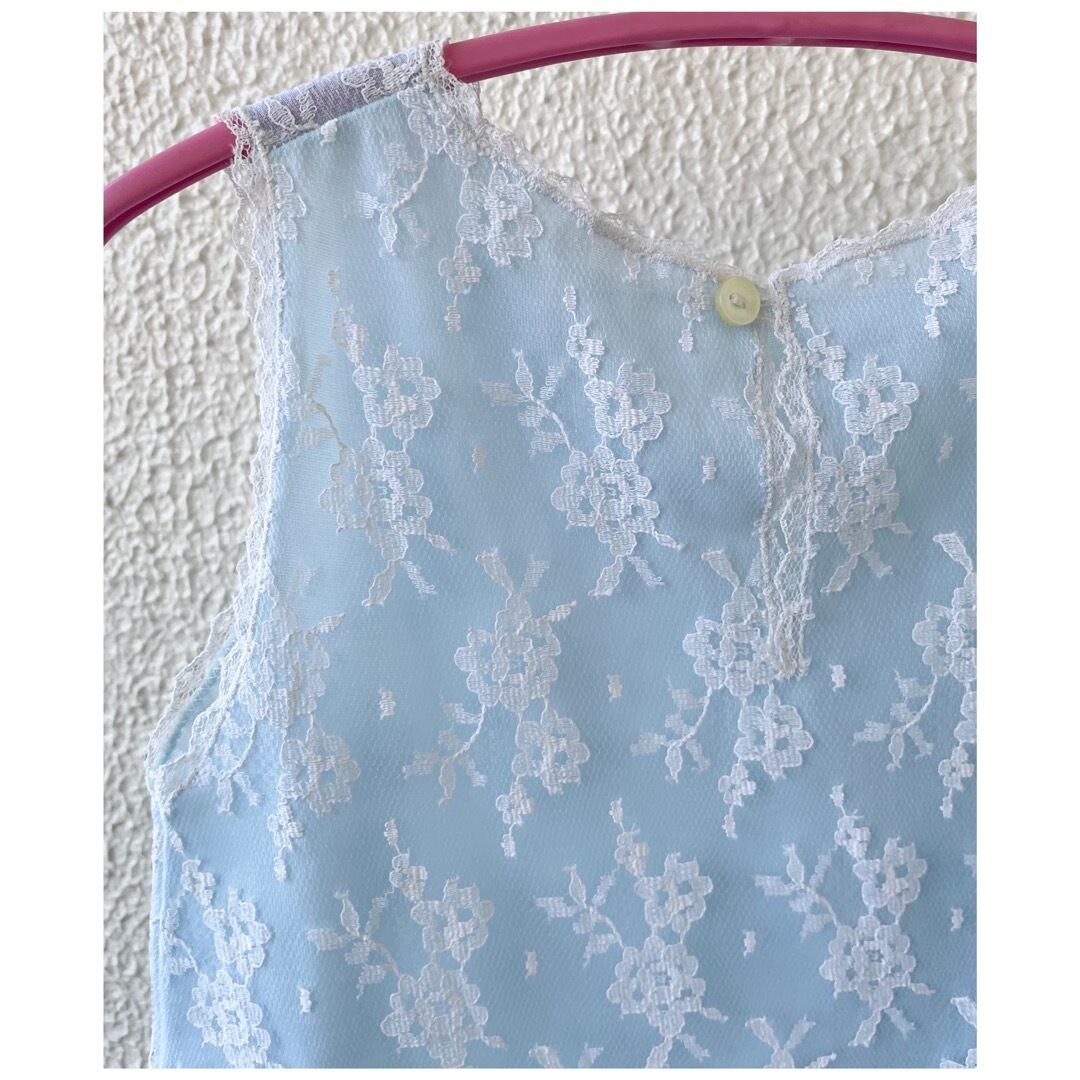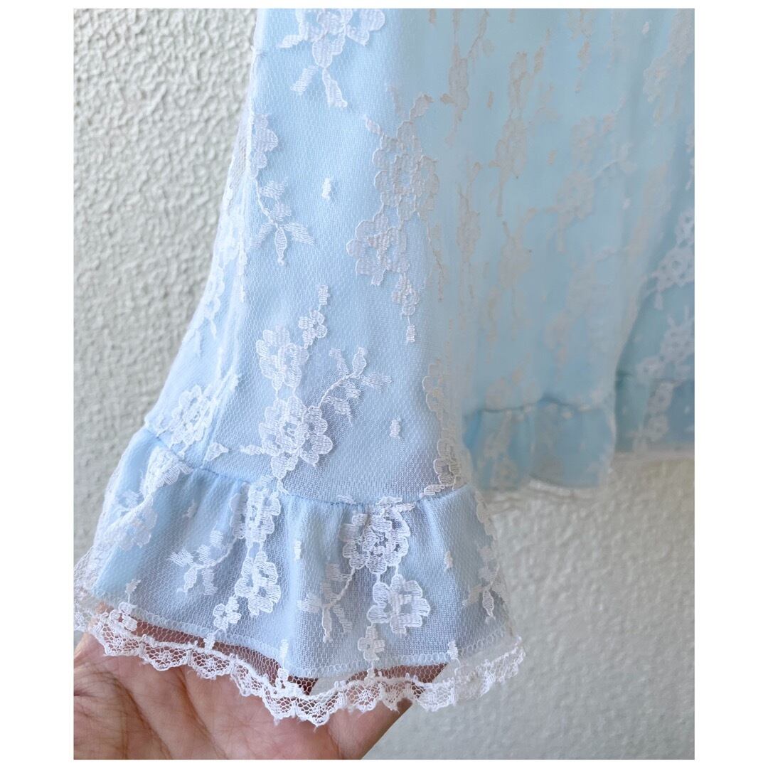 フランス ヴィンテージ キッズ 子供服 レースドレス ワンピース 水色