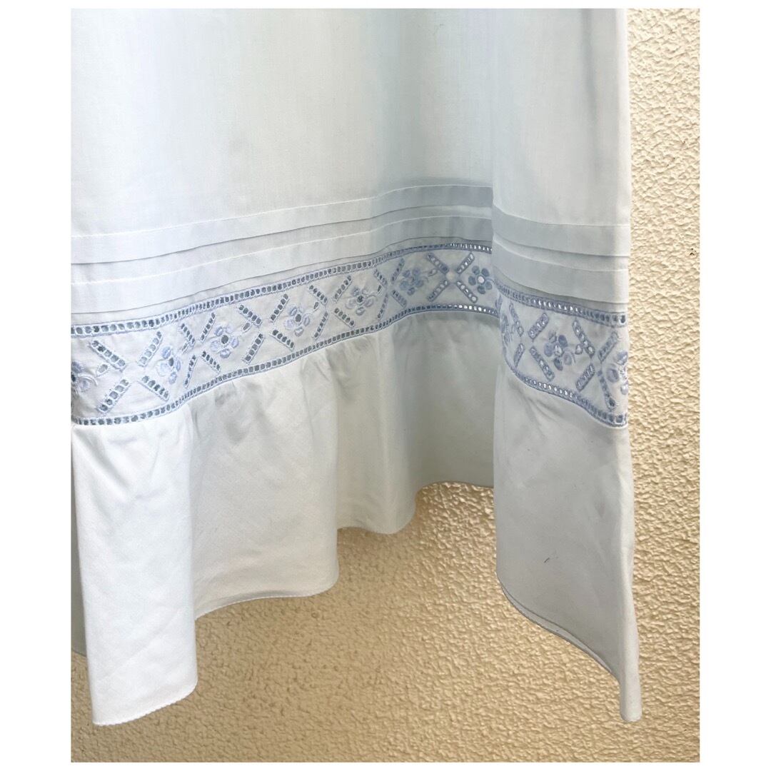 フランス ヴィンテージ ワンピース ロング カットワーク フリル コットン ライトブルー