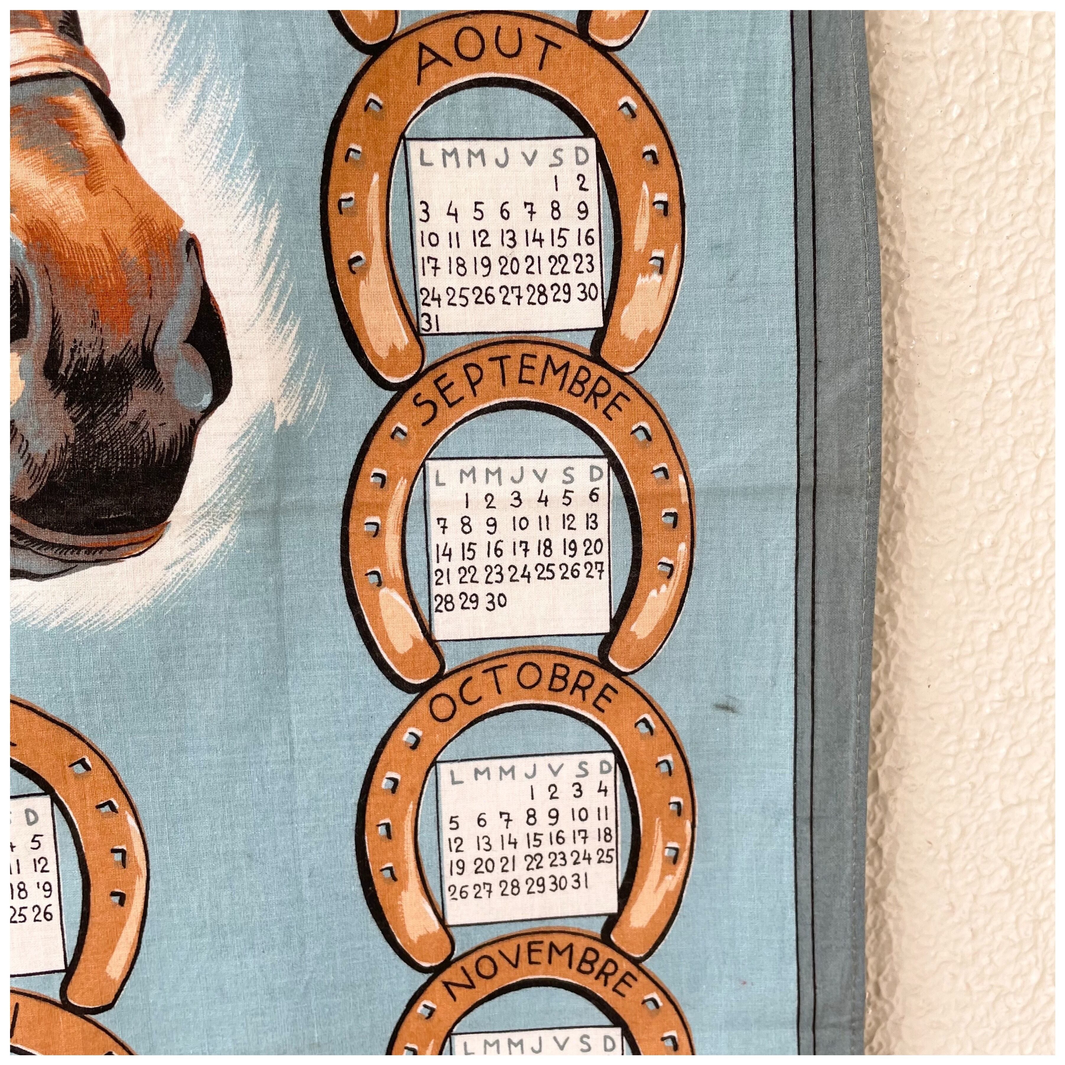 フランス ヴィンテージ ファブリックカレンダー クロス タペストリー 馬 馬具 1970