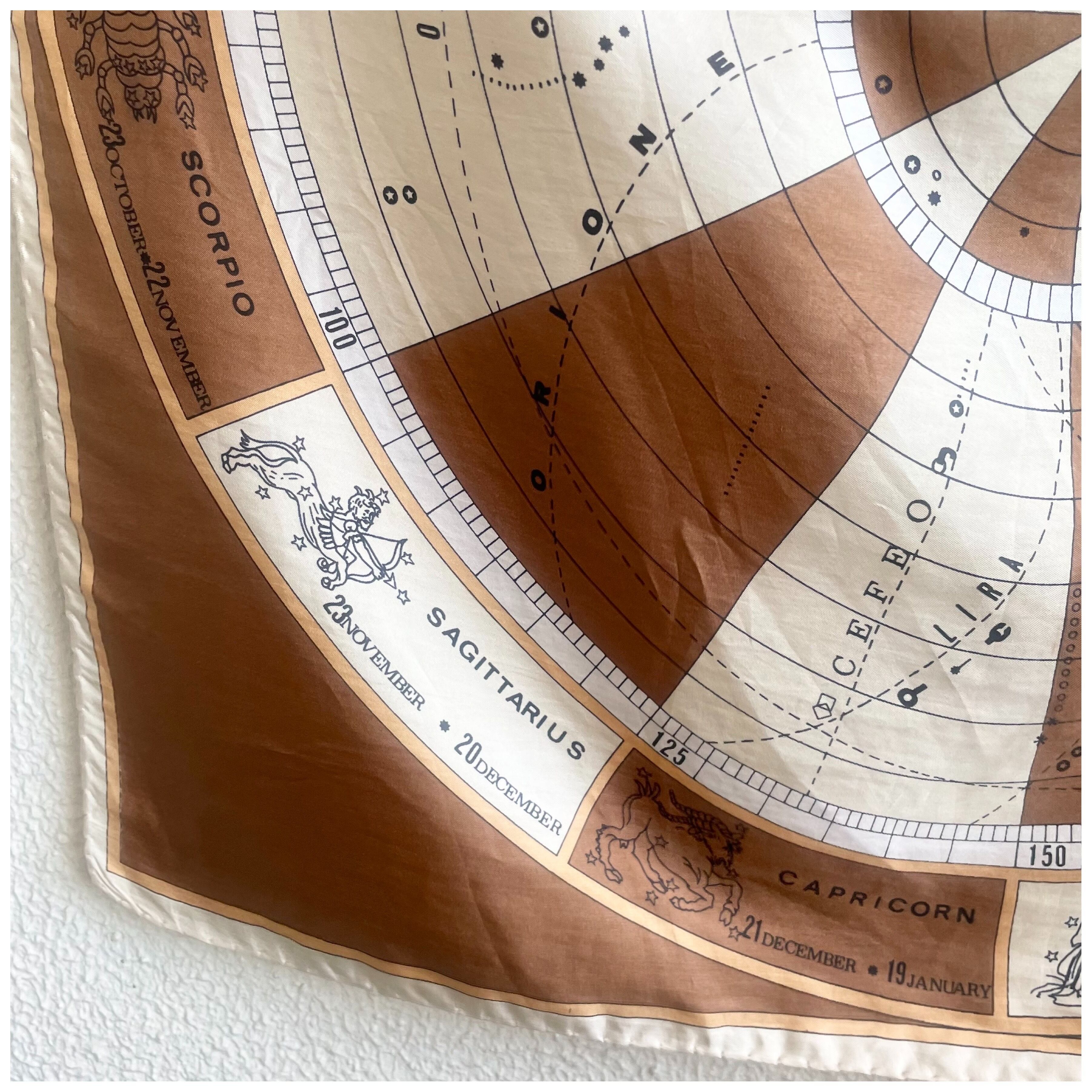 フランス ヴィンテージ スカーフ シルク 12星座 羅針盤 ハンドヘム