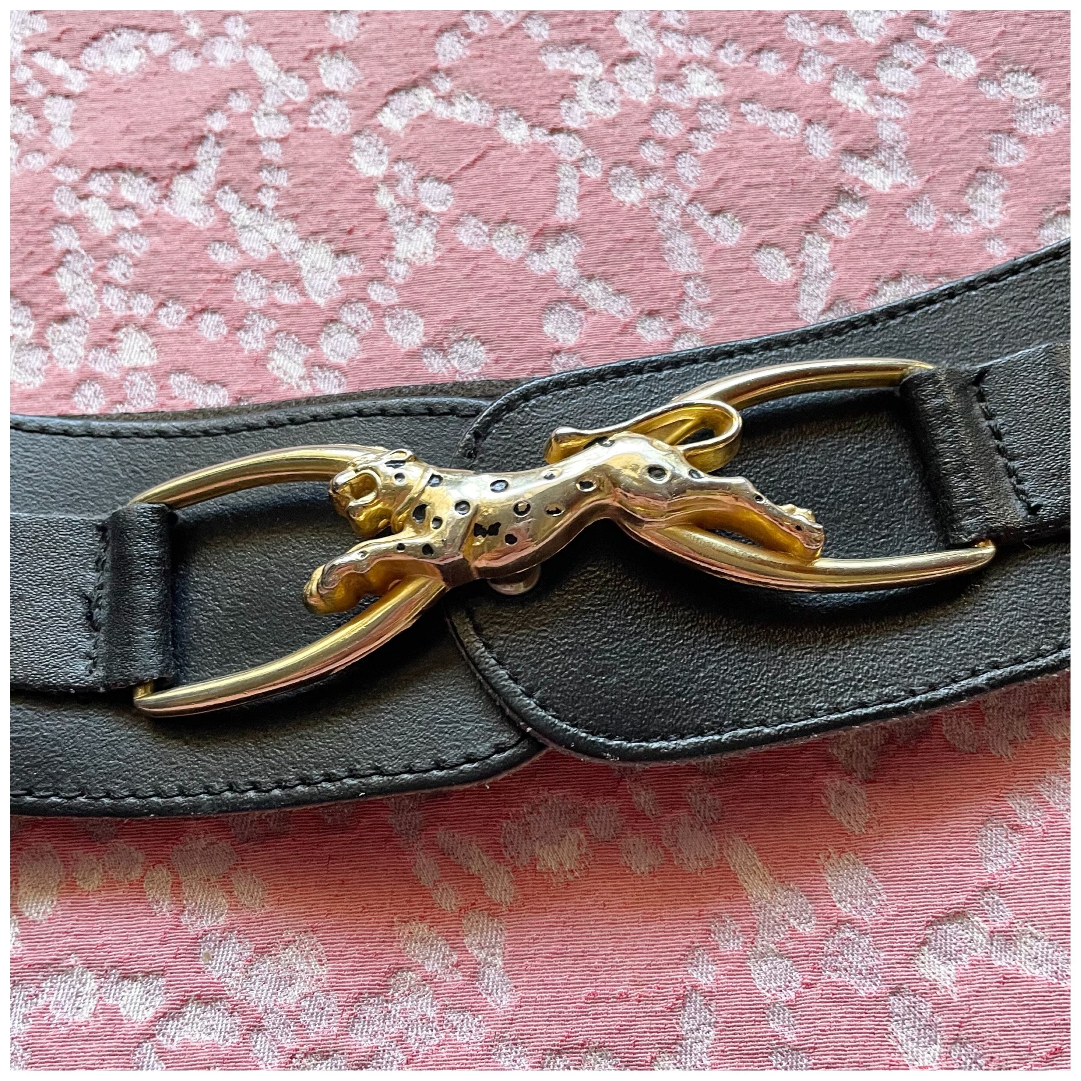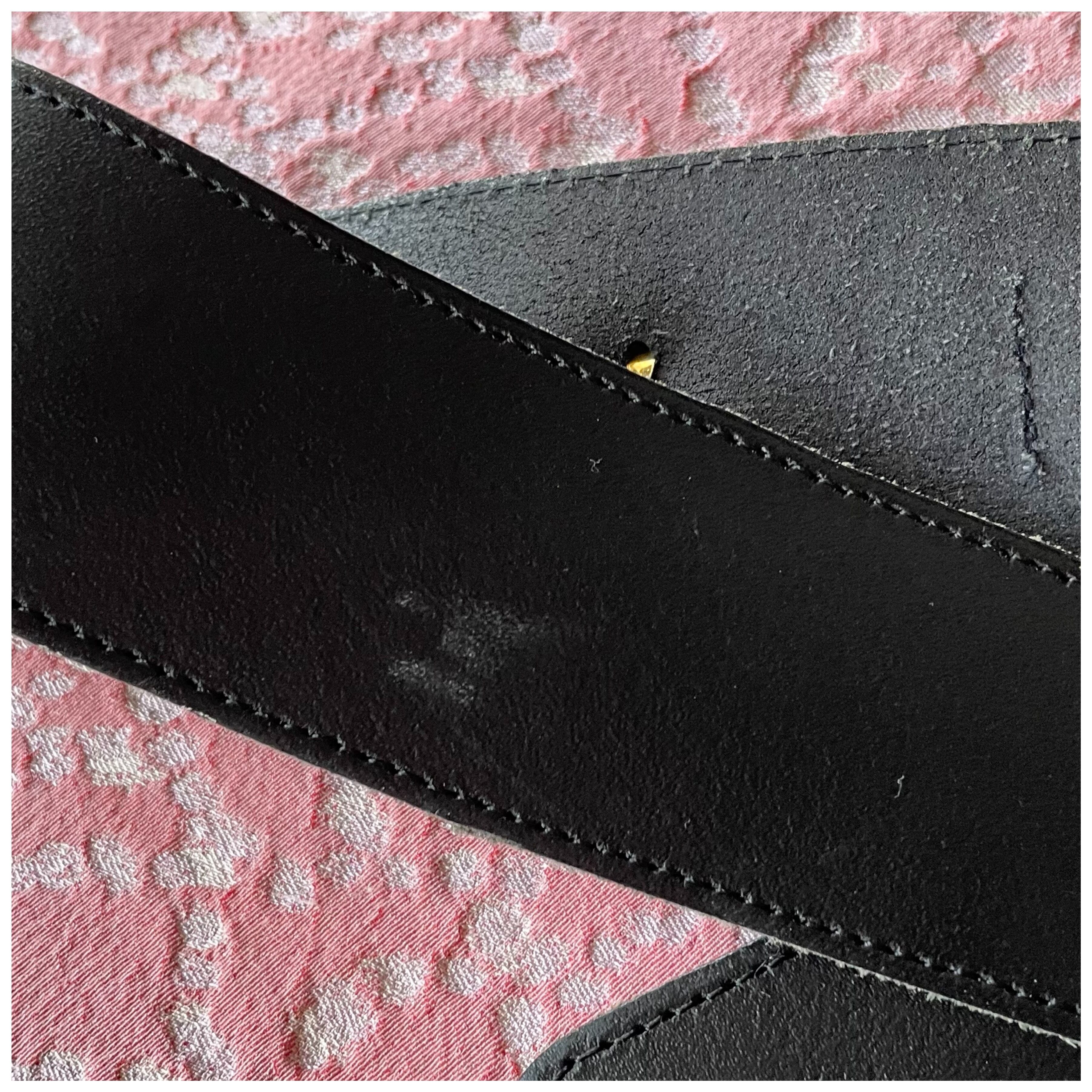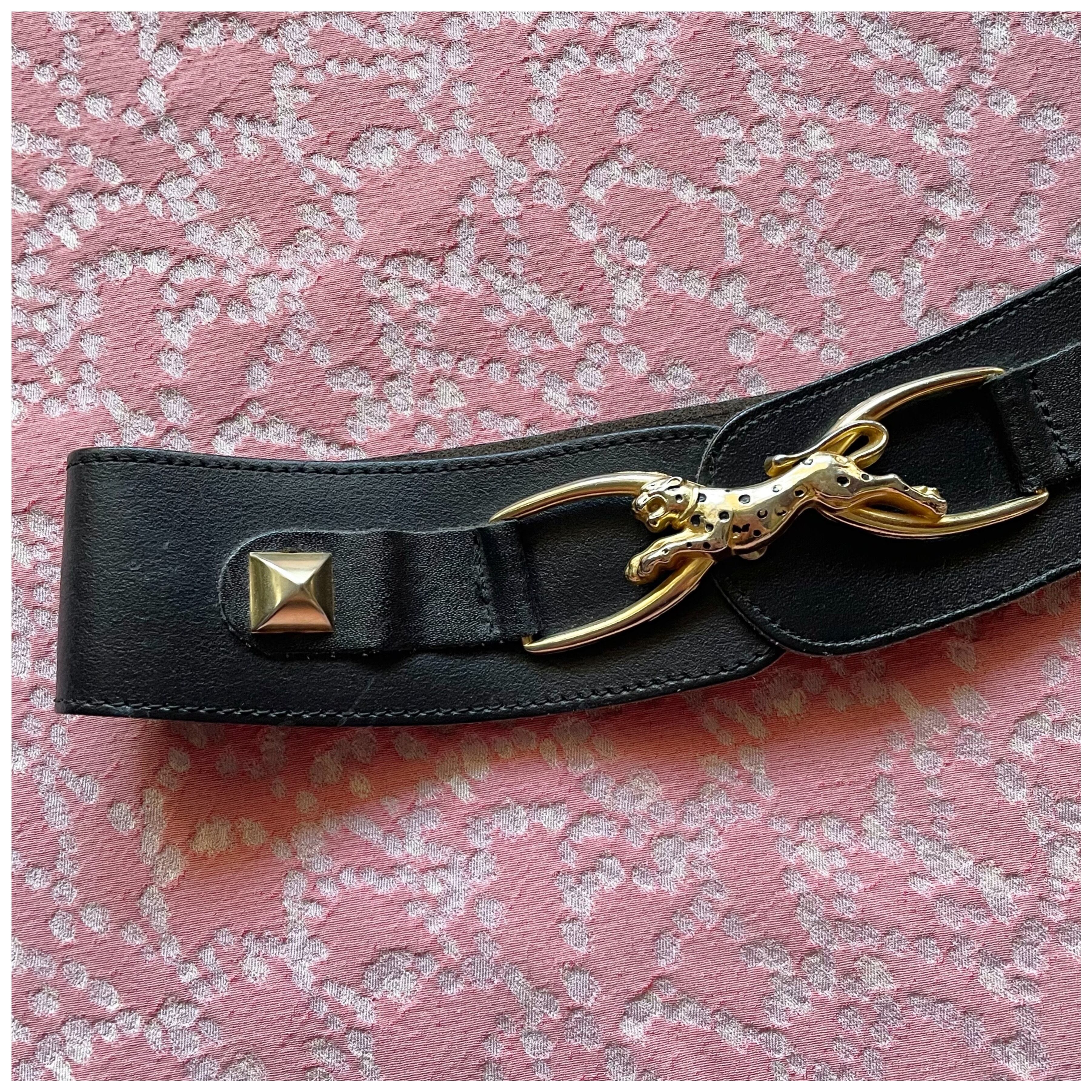 フランス ヴィンテージ ベルト ブラックレザー ヒョウ チャーム