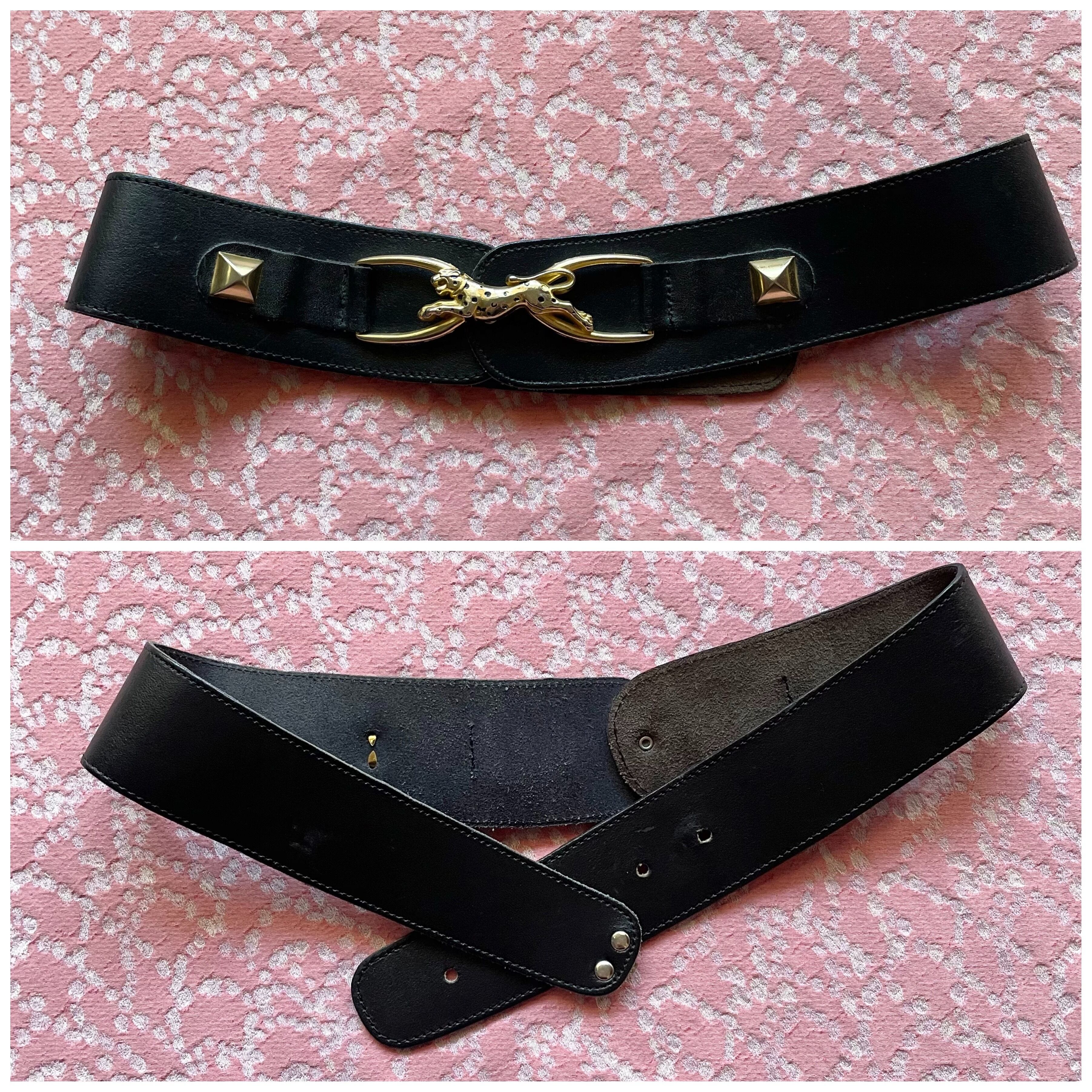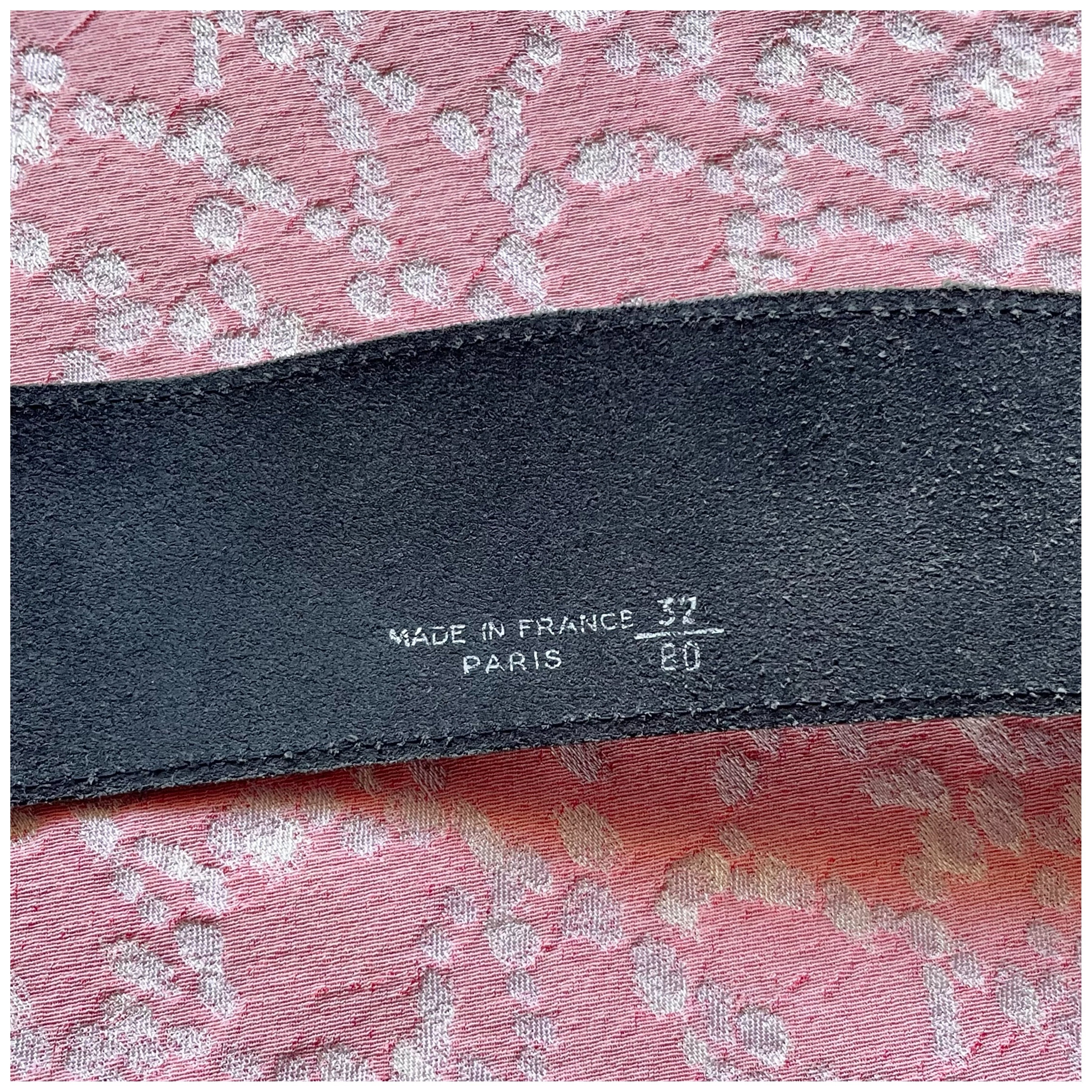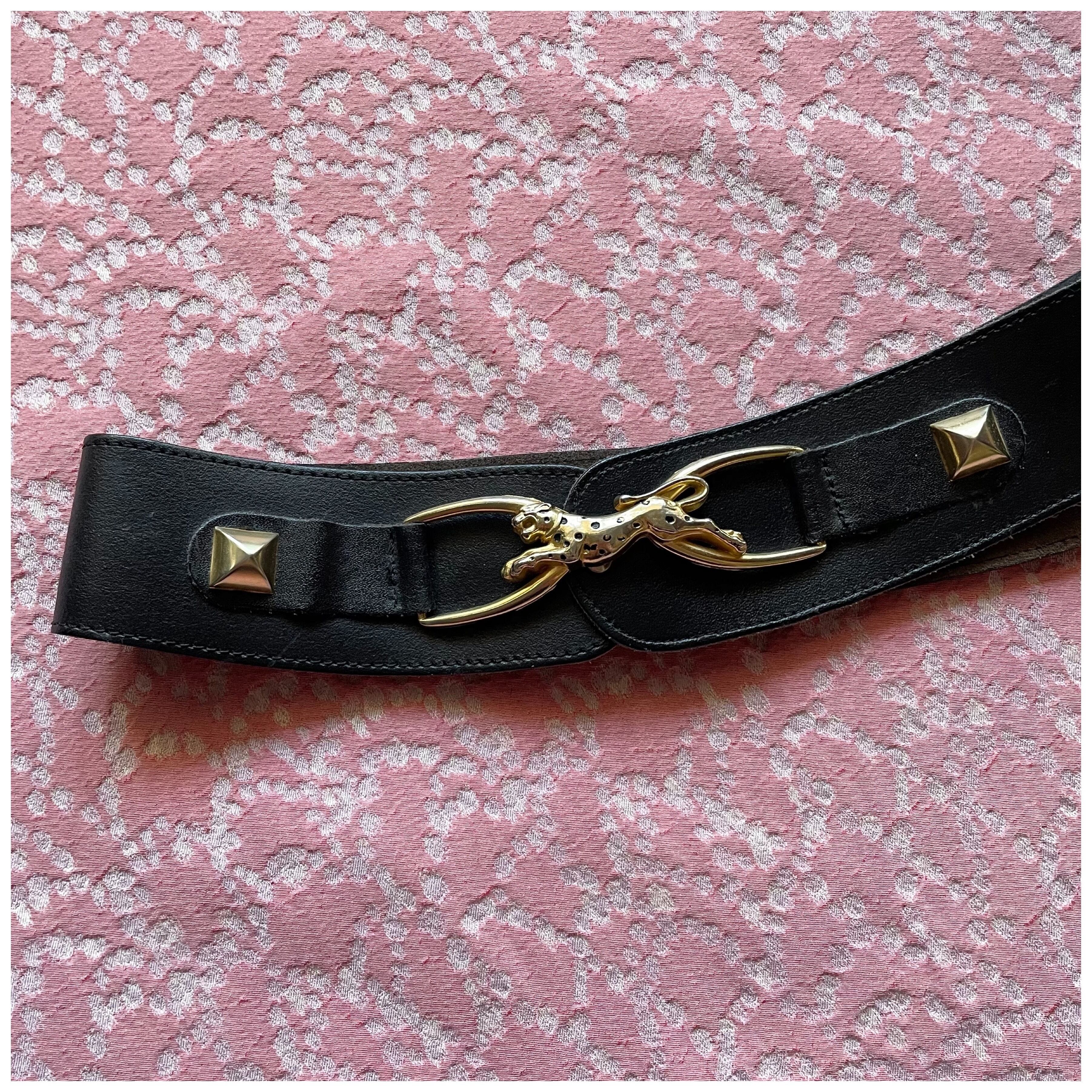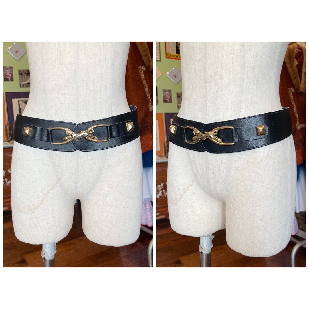 フランス ヴィンテージ ベルト ブラックレザー ヒョウ チャーム