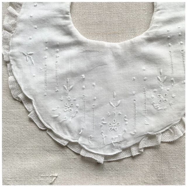 フランス ヴィンテージ アンティーク ベビースタイ ドールスタイ レーストリム 刺繍 ホワイト