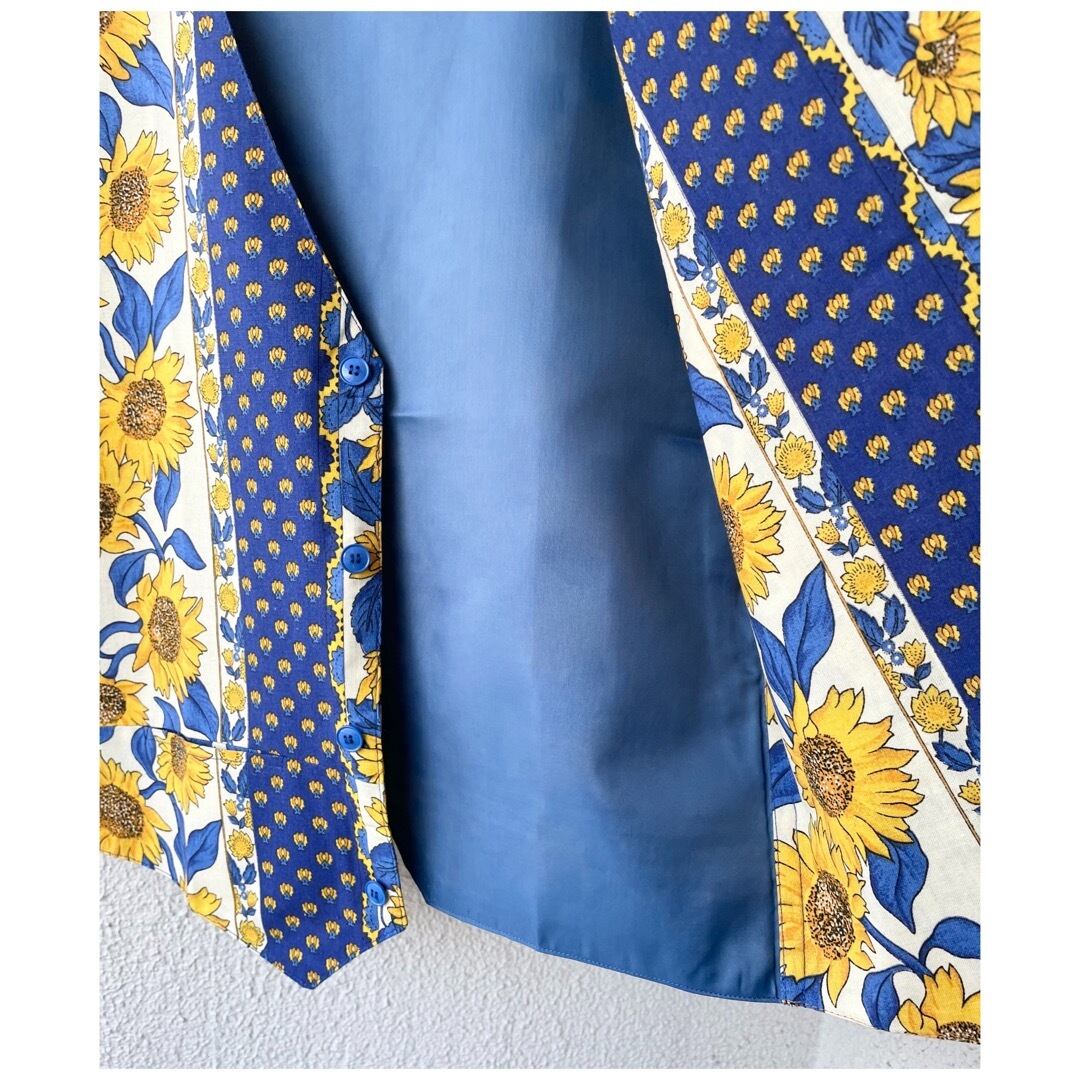 フランス ヴィンテージ デッドストック ベスト コットン ストライプ ひまわり プロヴァンス ブルー