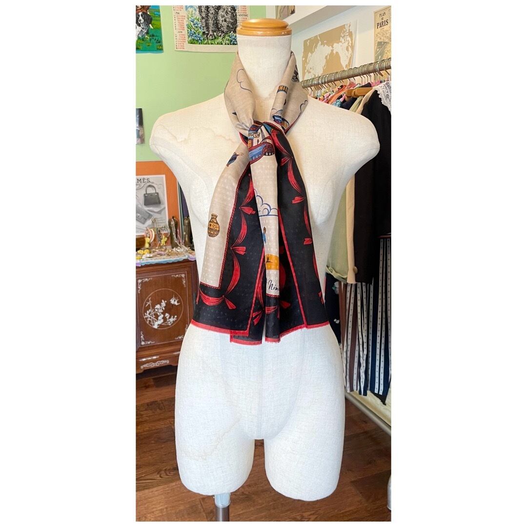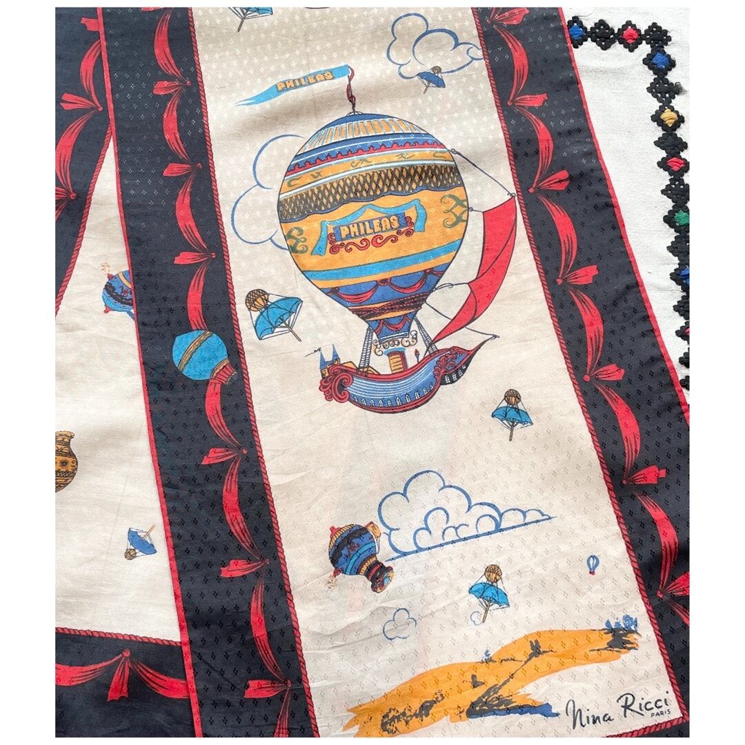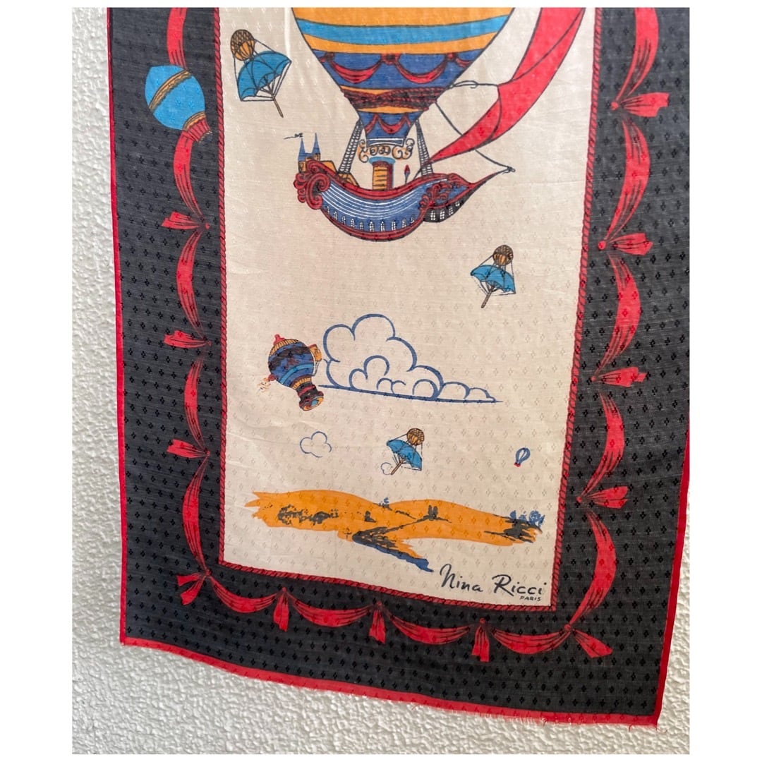 フランス ヴィンテージ スカーフ シルク ニナリッチ 気球 ハンドヘム 長方形